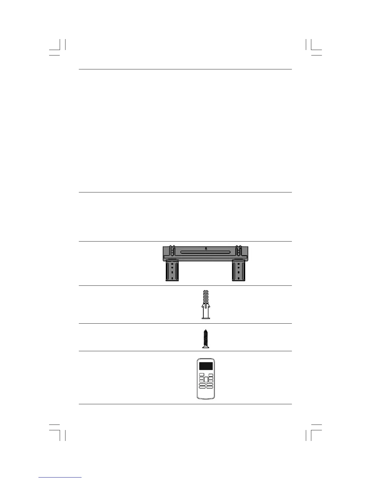 parts and accessories to install the air conditioner. Improper installation may result in water