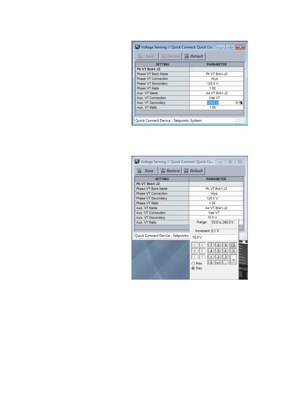 5. For setpoints requiring non-numerical pre-set values (e.g. Phase VT Connection