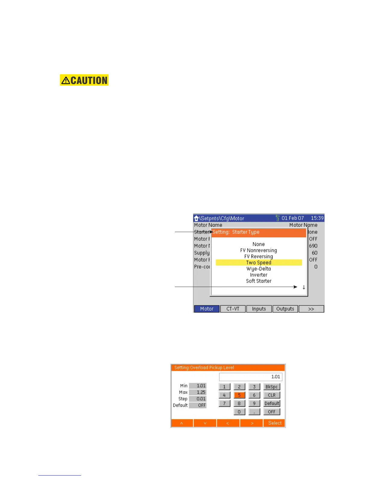 Settings may be changed while the motor is running. However, appropriate measures