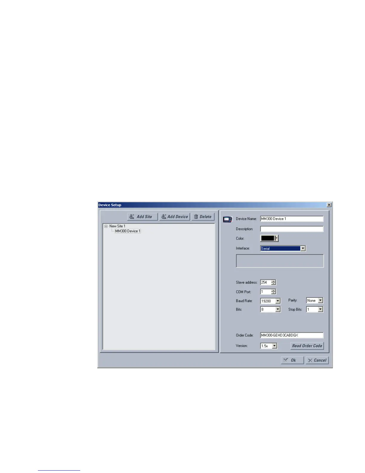 4. The new site will appear in the upper-left list in the EnerVista MM300/MM200