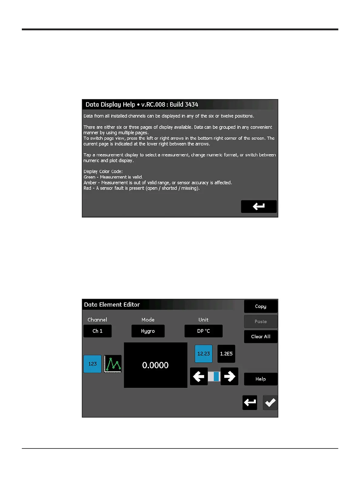 by tapping on the desired measurement display. This will open a Data Element Editor screen similar to that