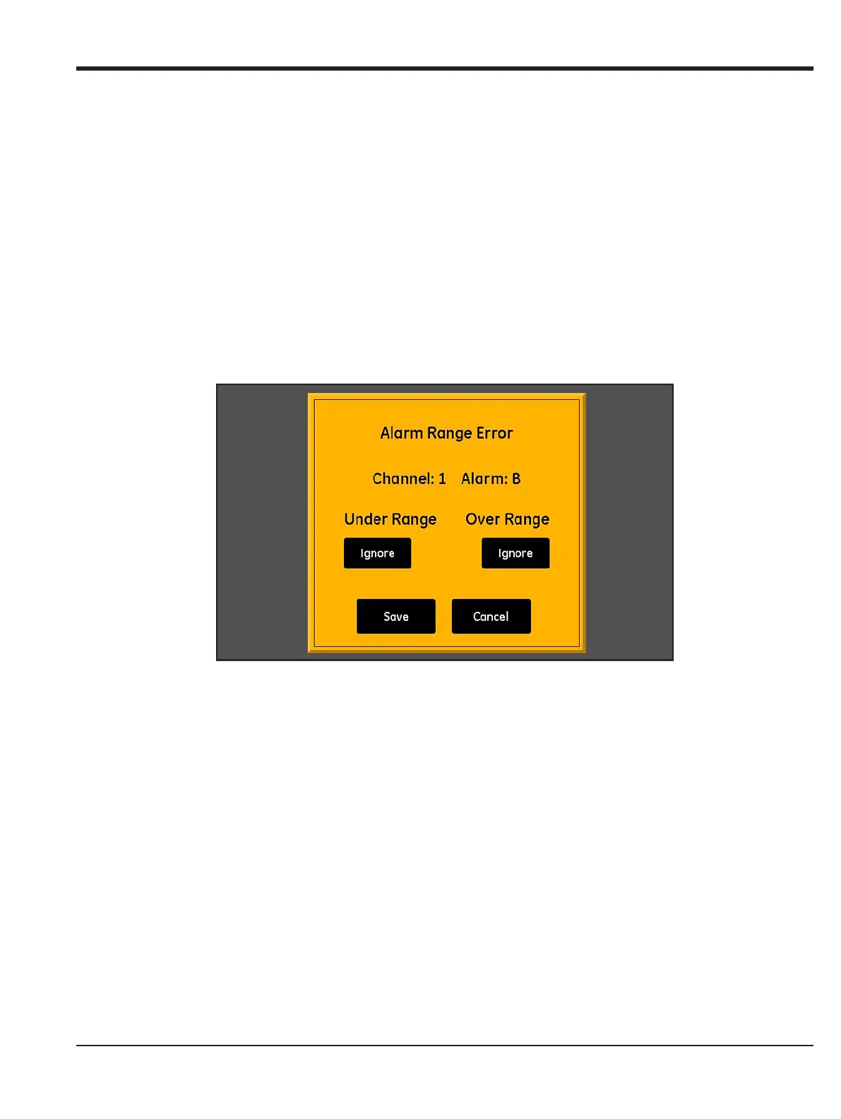 1. Tap the Channel (1-6) and Alarm (A or B), and then tap the Range Error button to open a screen similar