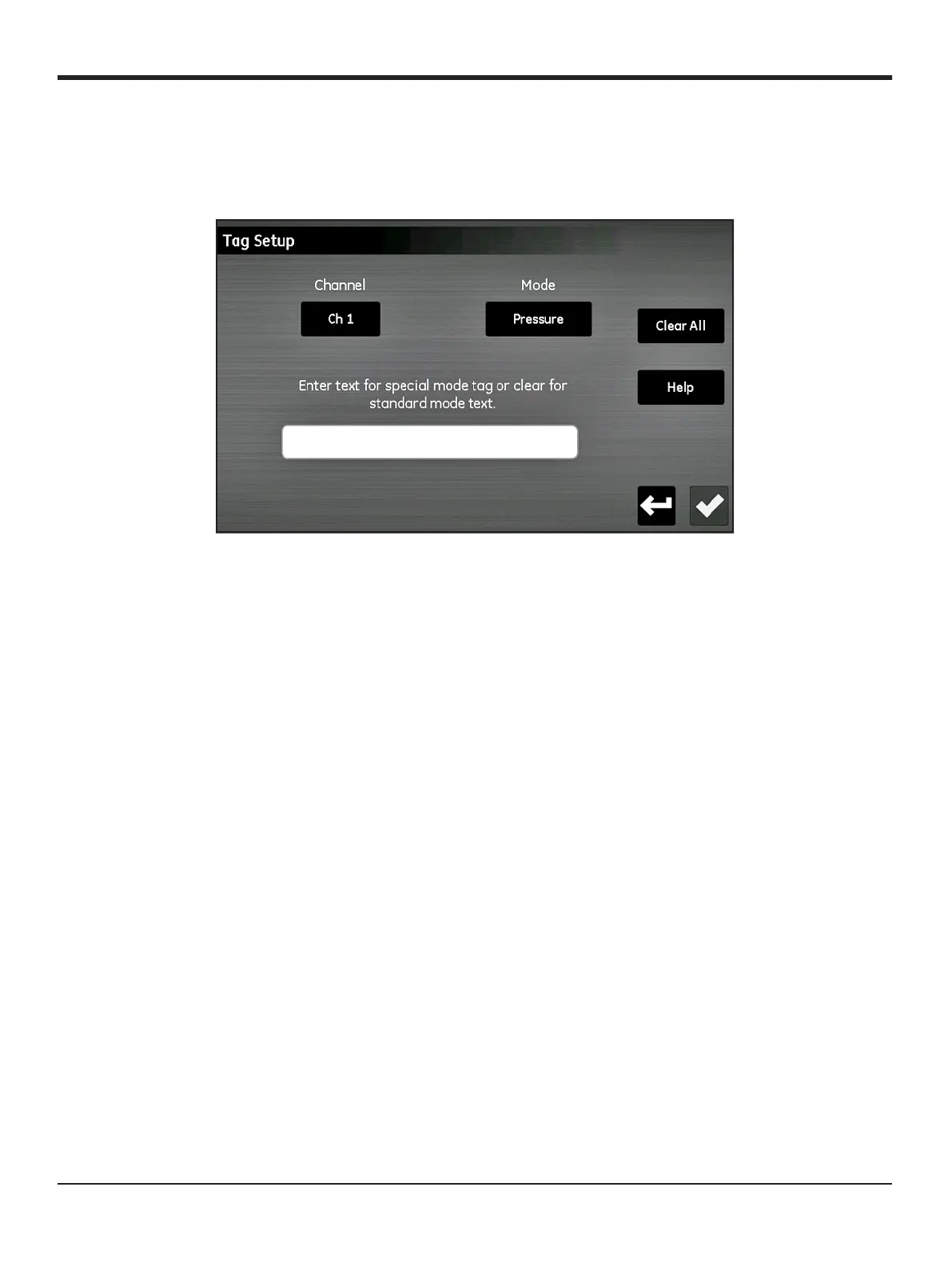 4. Tap the text bar to enter the tag for the selected Channel and Mode. Tap the Save button after entering