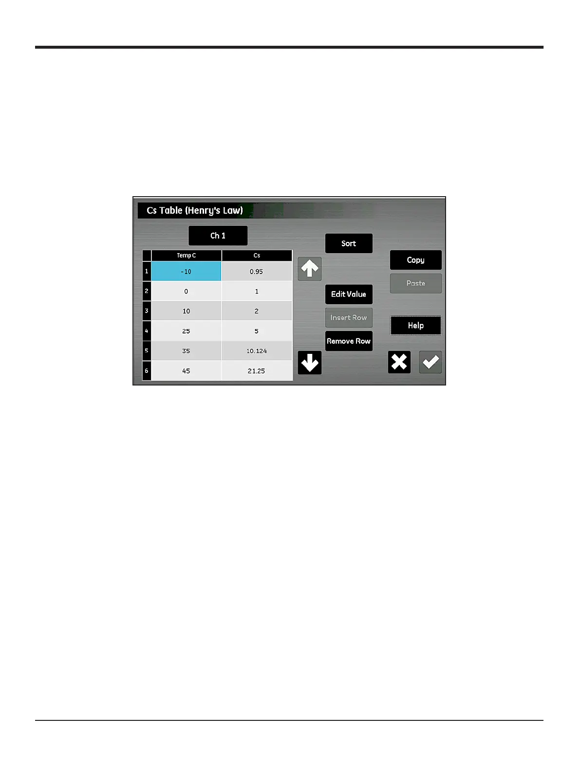 5. Repeat steps 2-4 until all of the data has been entered. After you select Save, the Cs Table will appear.