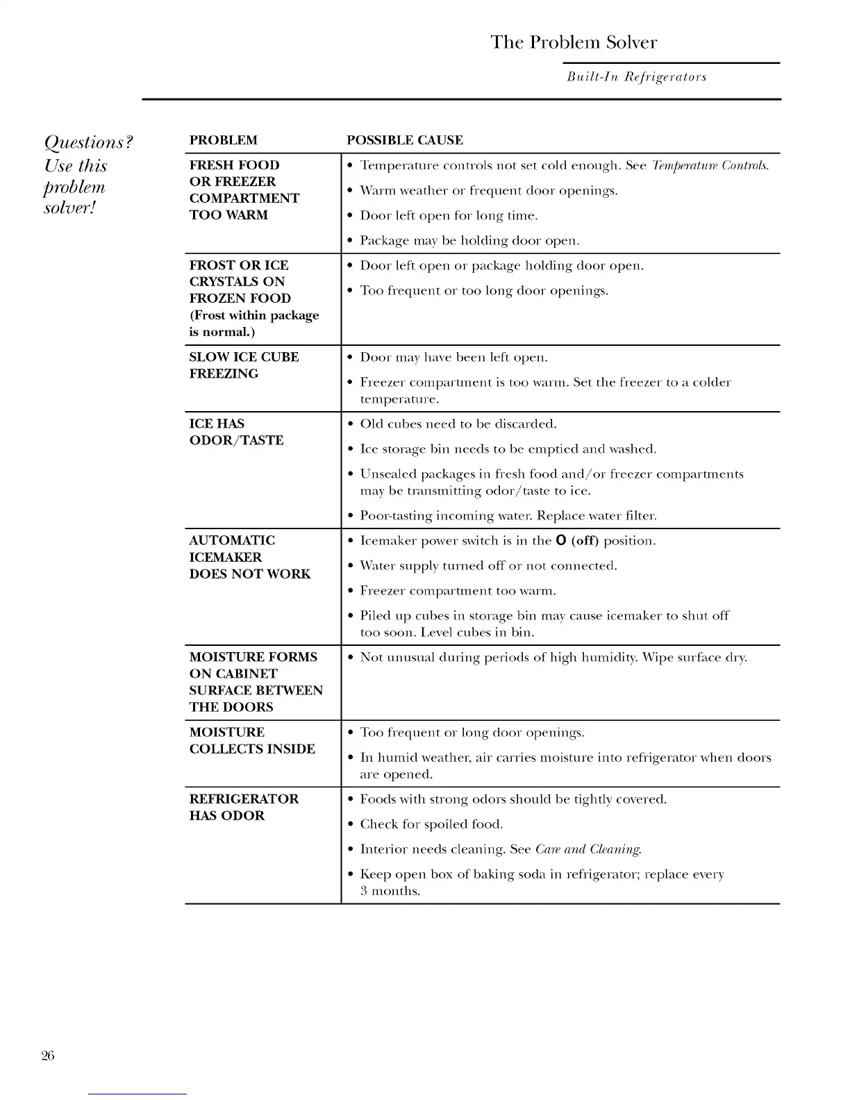 • Temperature controls not set cold enough. See 7bmperatm_ Cont_vls.