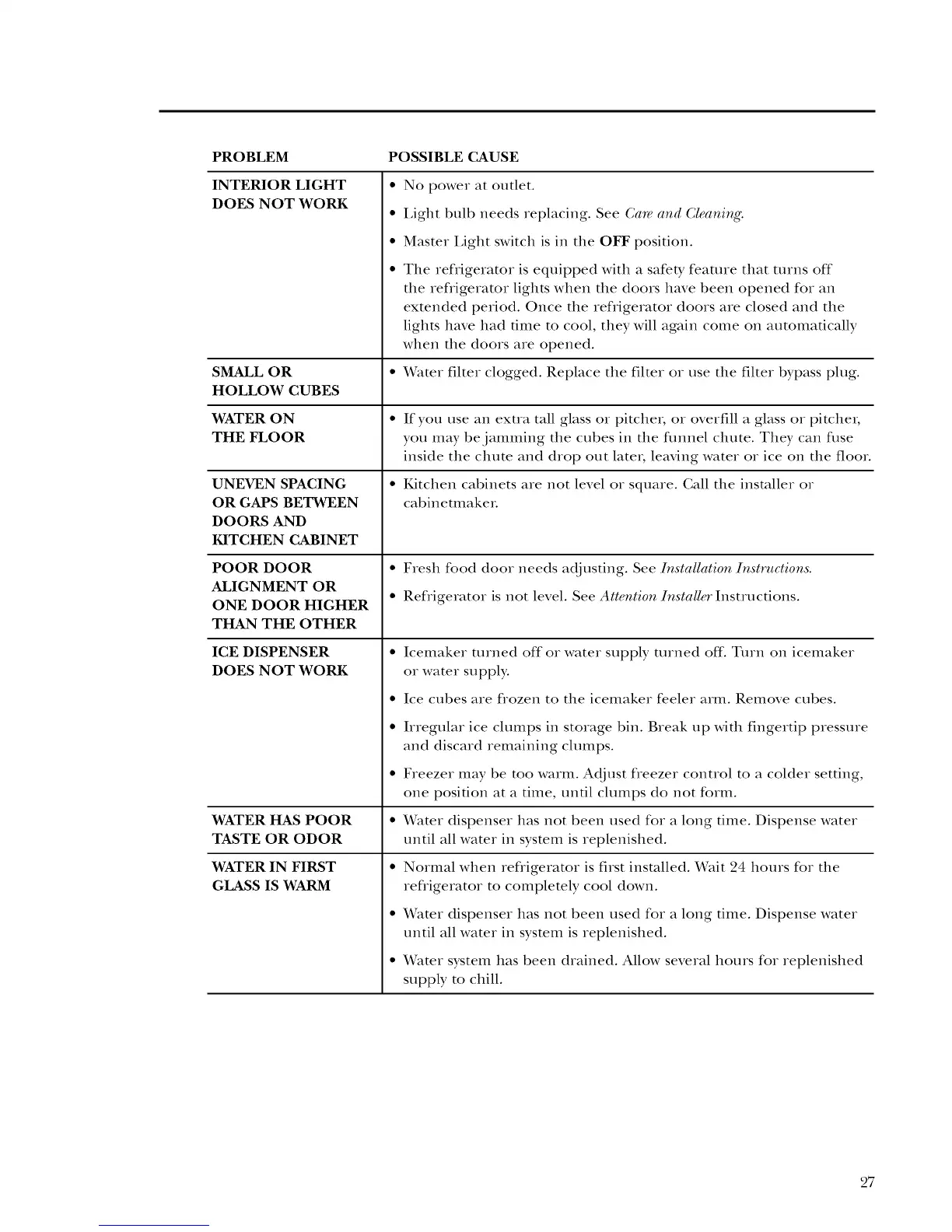 WATER IN FIRST • Normal when refligerator is first installed. Wait 24 hours for the