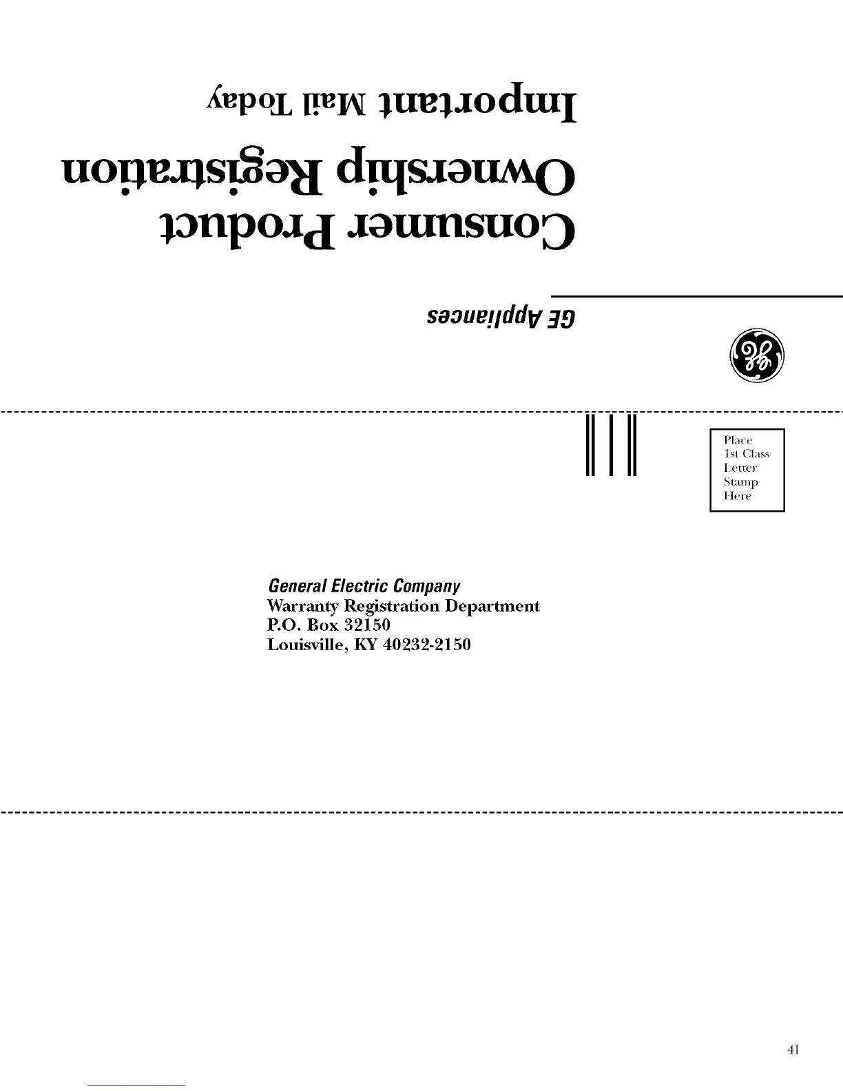 Warranty Registration Department