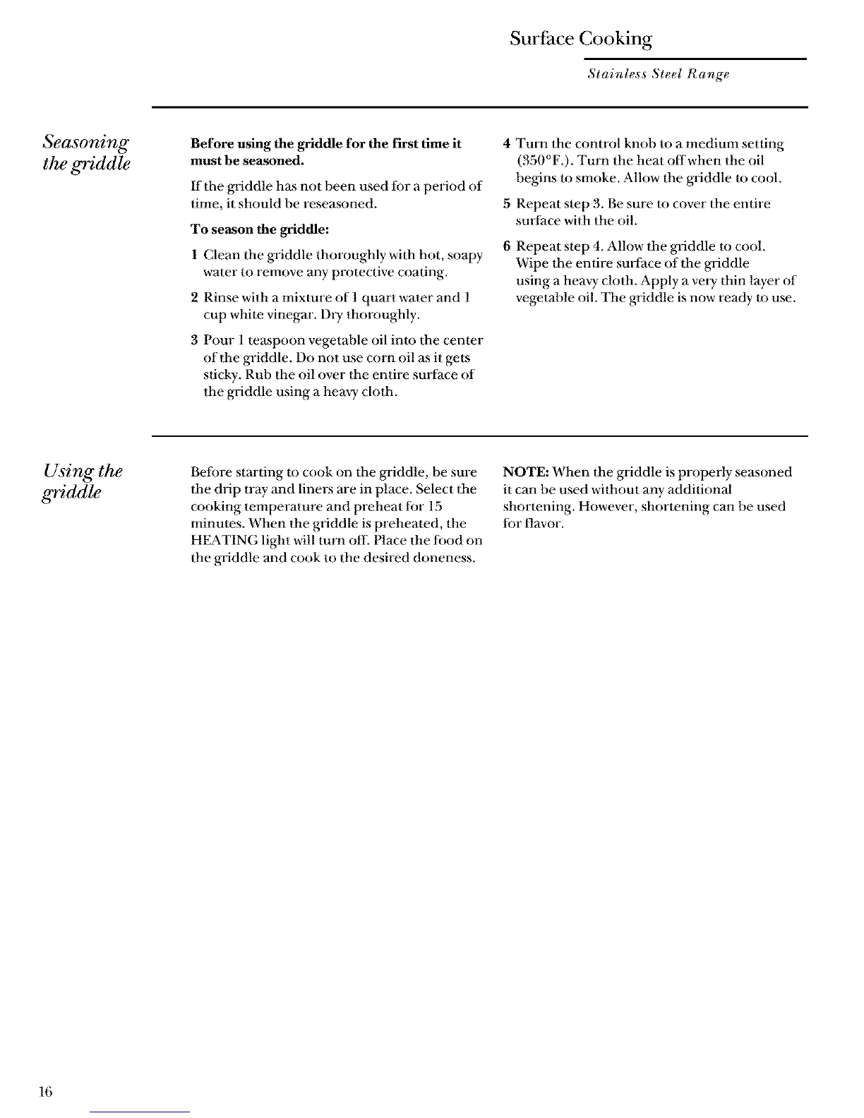 NOTE: When the griddle is properly seasoned