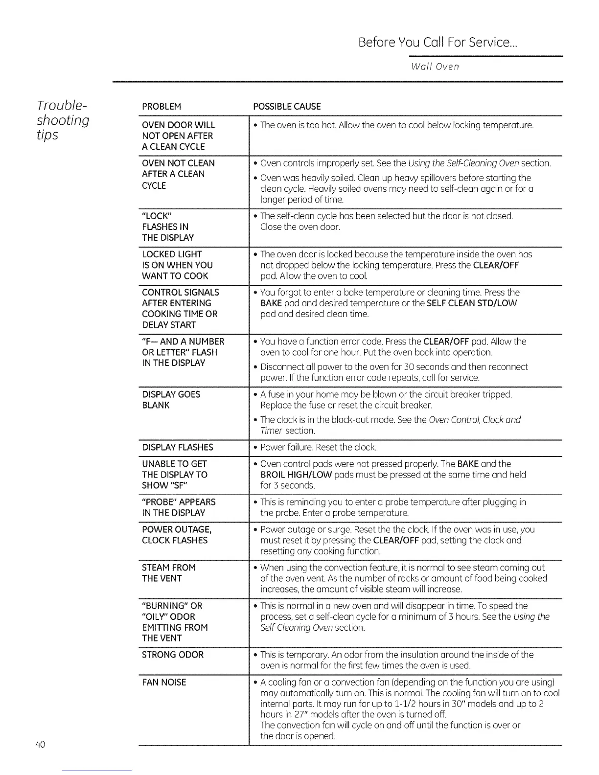 "OILY"ODOR process,set a self-clean cycle for a minimum of 3 hours. Seethe Usingthe