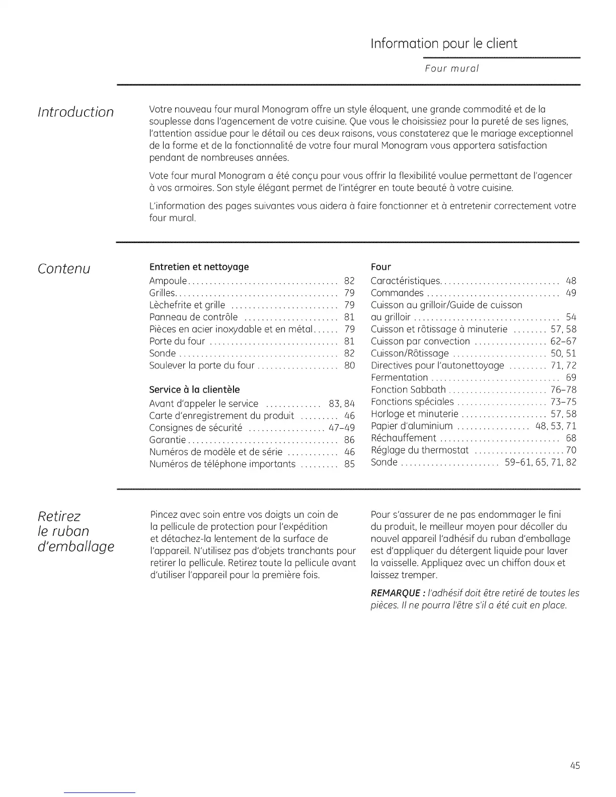 de la forme et de la fonctionnalit6 de votre four mural Monogram vous apportera satisfaction