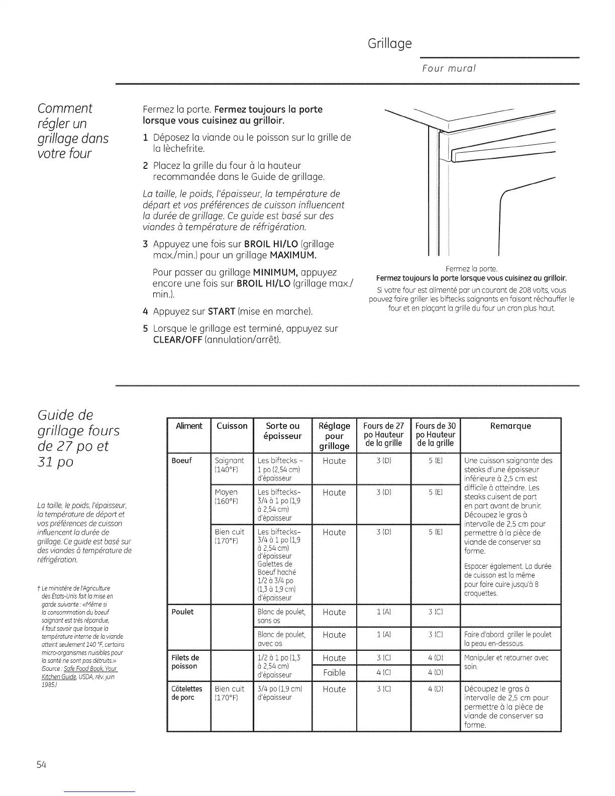 Fermez toujours la porte Iorsque vous cuisinez au grilloir.
