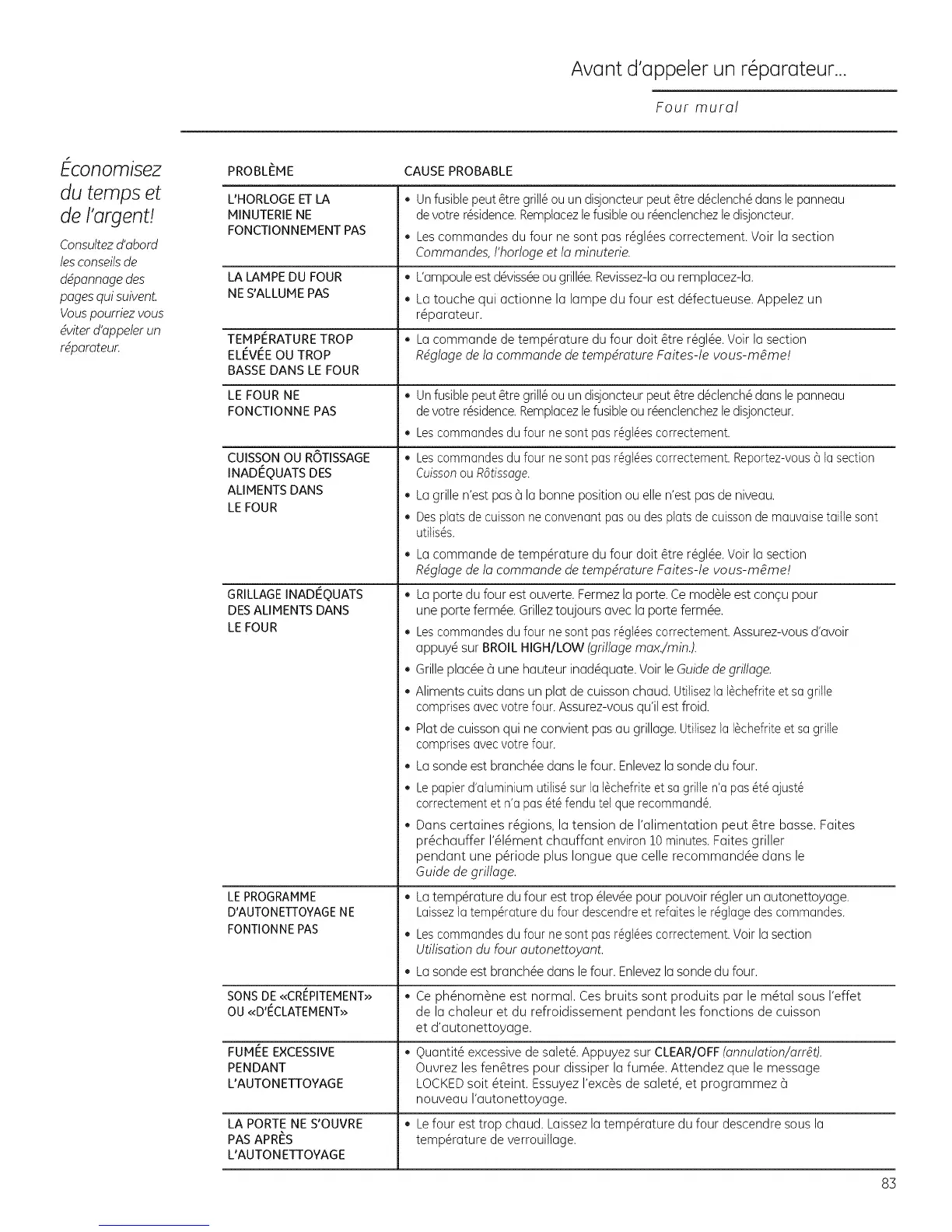 Latemp6rature du four est trap 61ev6epour pouvoir r6gler un autonettoyage.