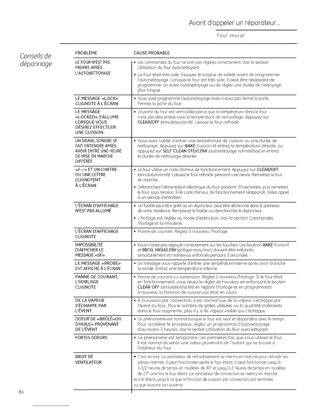 ODEUR DE <<BROLE>>OU • Ce phGnom#ne est normal Iorsque le four est neuf et disparaffra avec le temps.