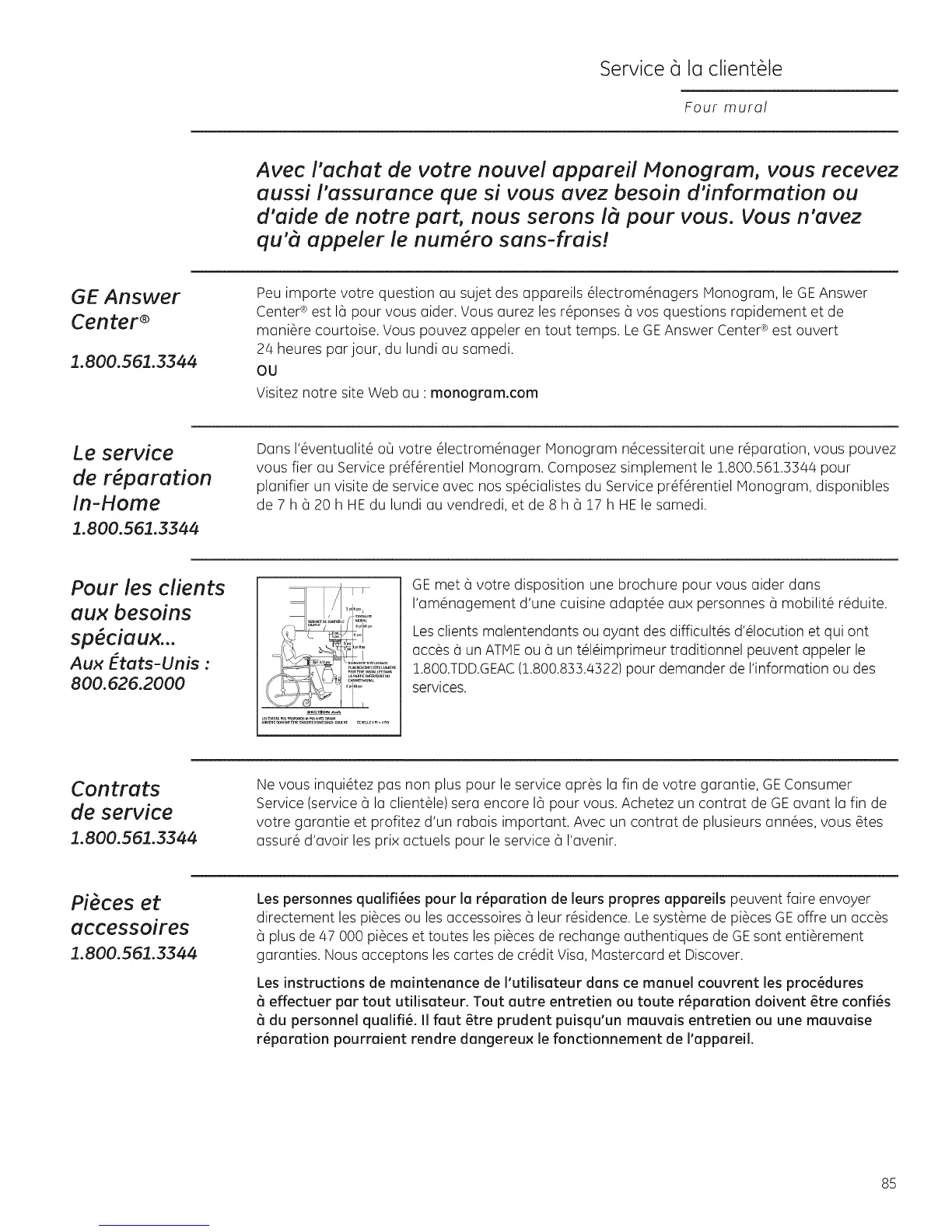 Dans I'SventualitS o_ votre SlectromSnager Monogram nScessiterait une rSparation, vous pouvez