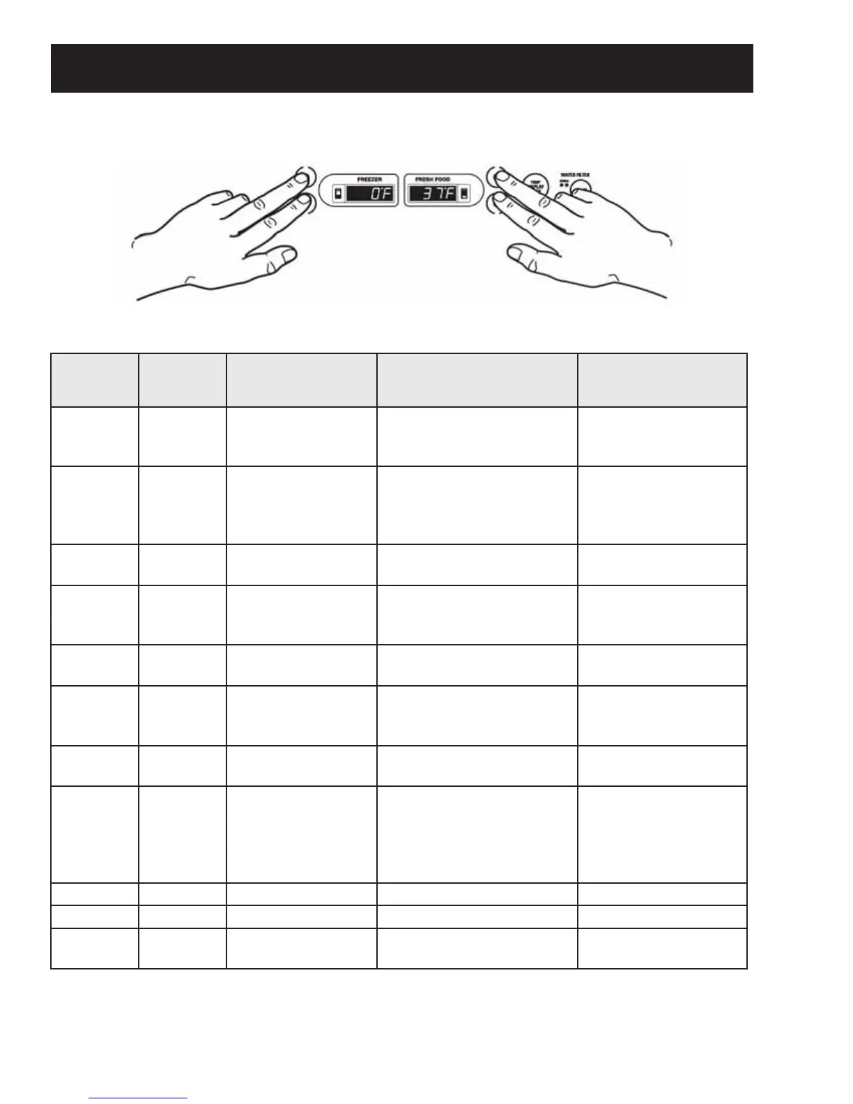 Enter the diagnostic mode by pressing both freezer temperature pads (plus and minus) and the refrigerator