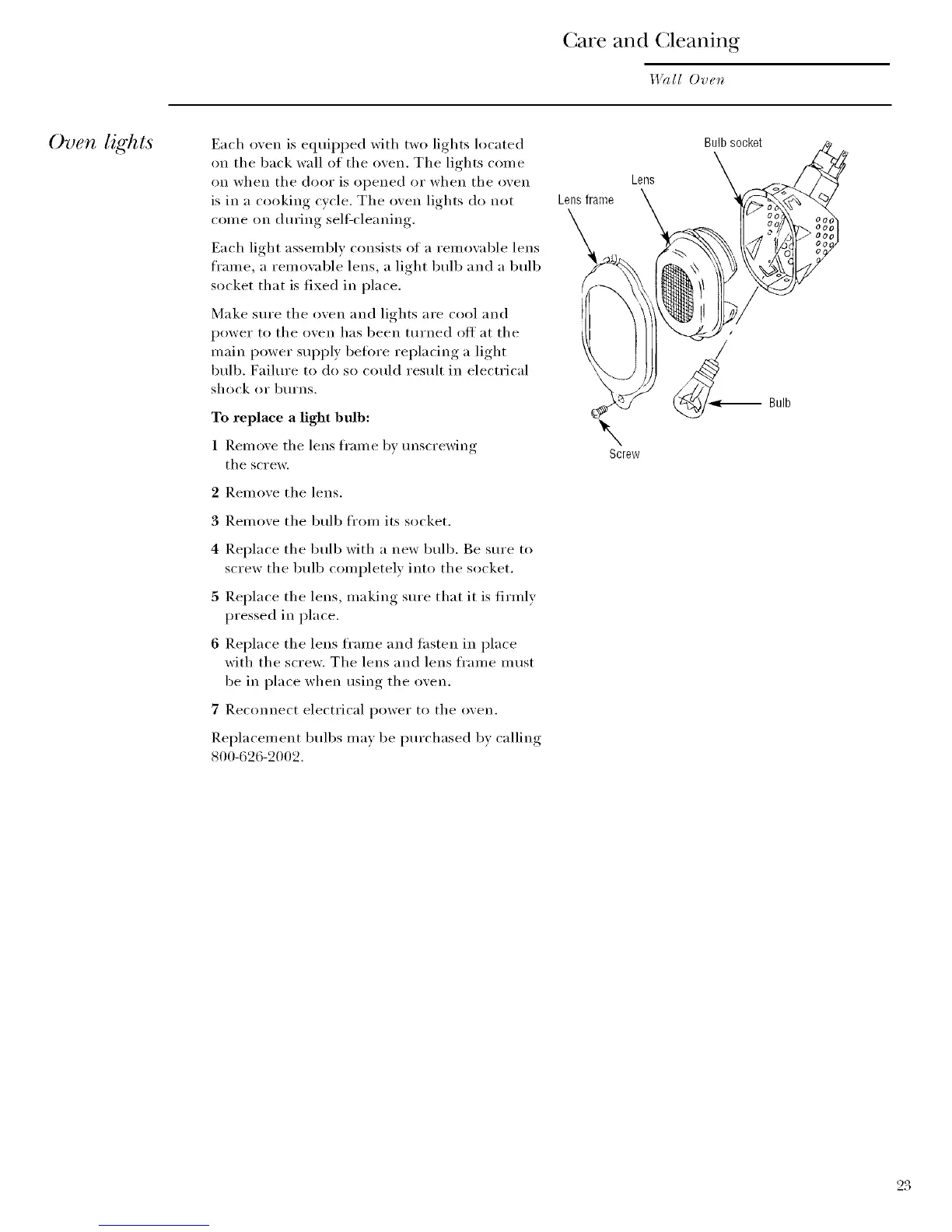Oven lights Each ()veil is equipped with two lights located