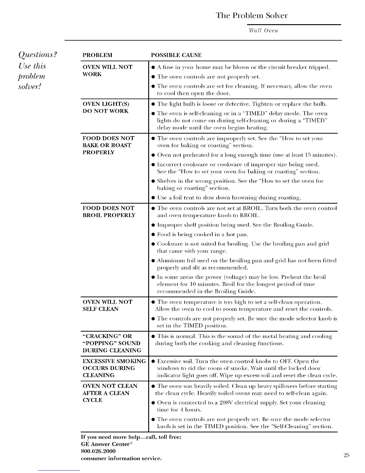 • Excessive soil. Turn tile ()veil control knobs to OFE Open tile