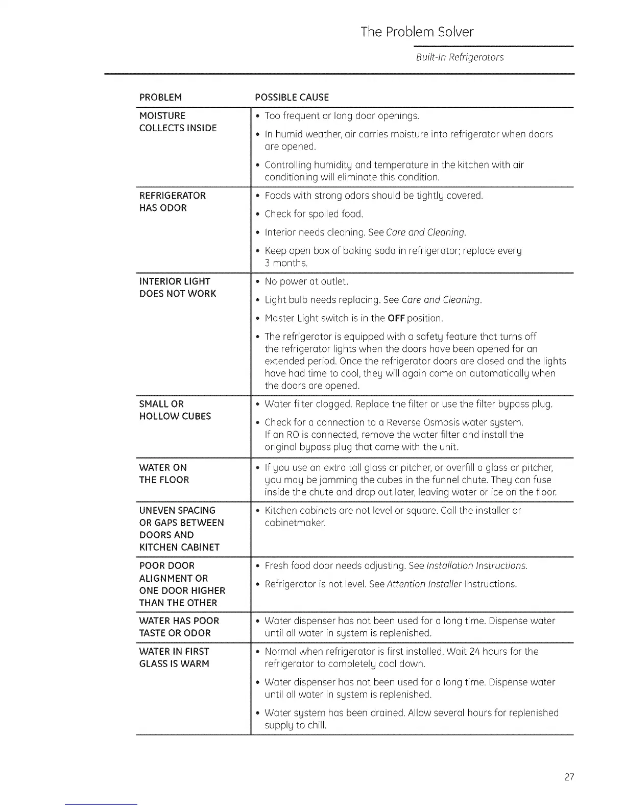 Refrigerator is not level. SeeAttention Insta!ler Instructions.