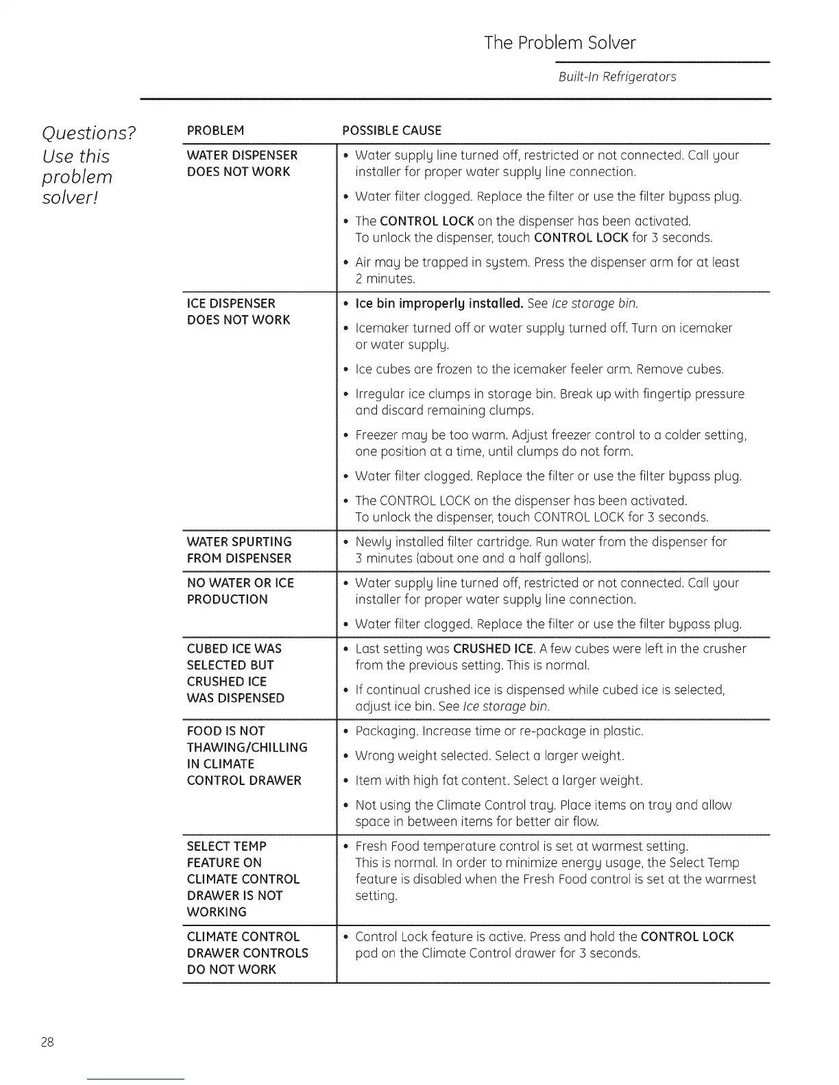 • Irregular ice clumps in storage bin. Break up with fingertip pressure