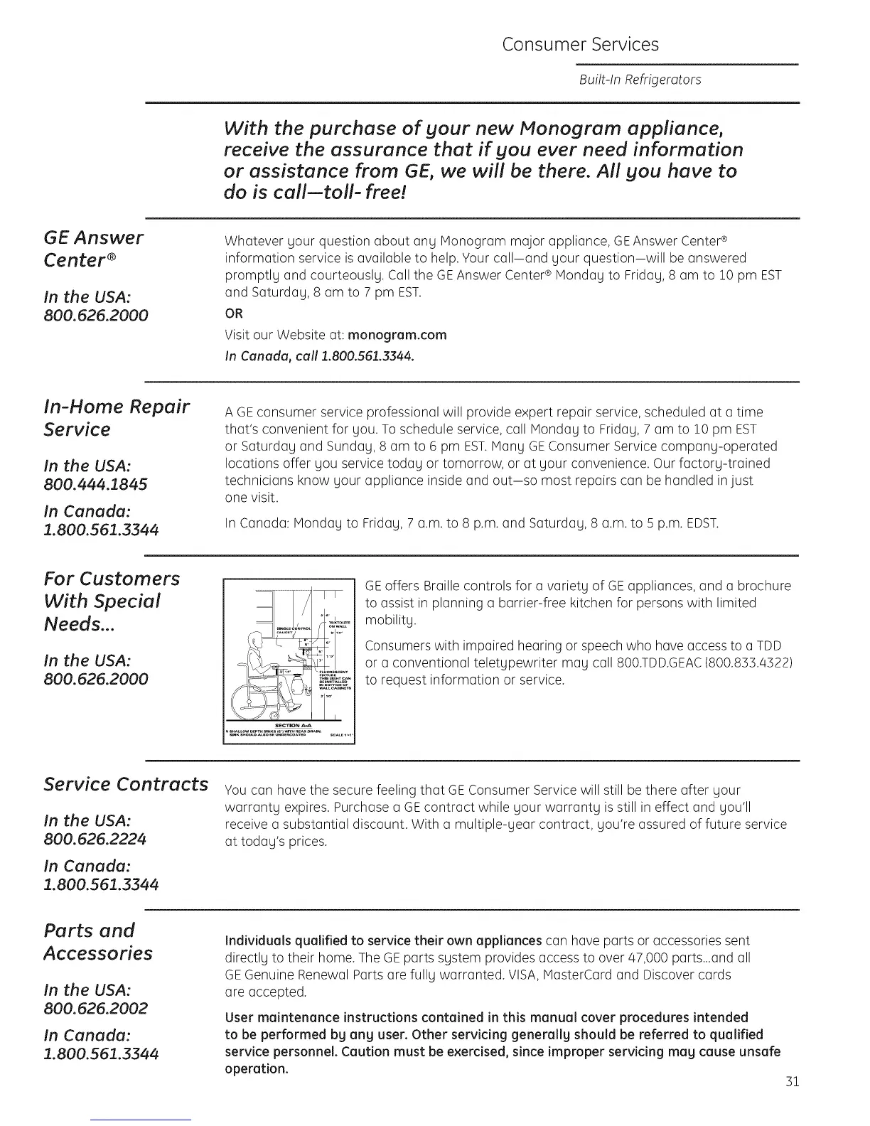 promptly and courteously. Callthe GEAnswer Center®Monday to Friday, 8 am to !0 pm EST