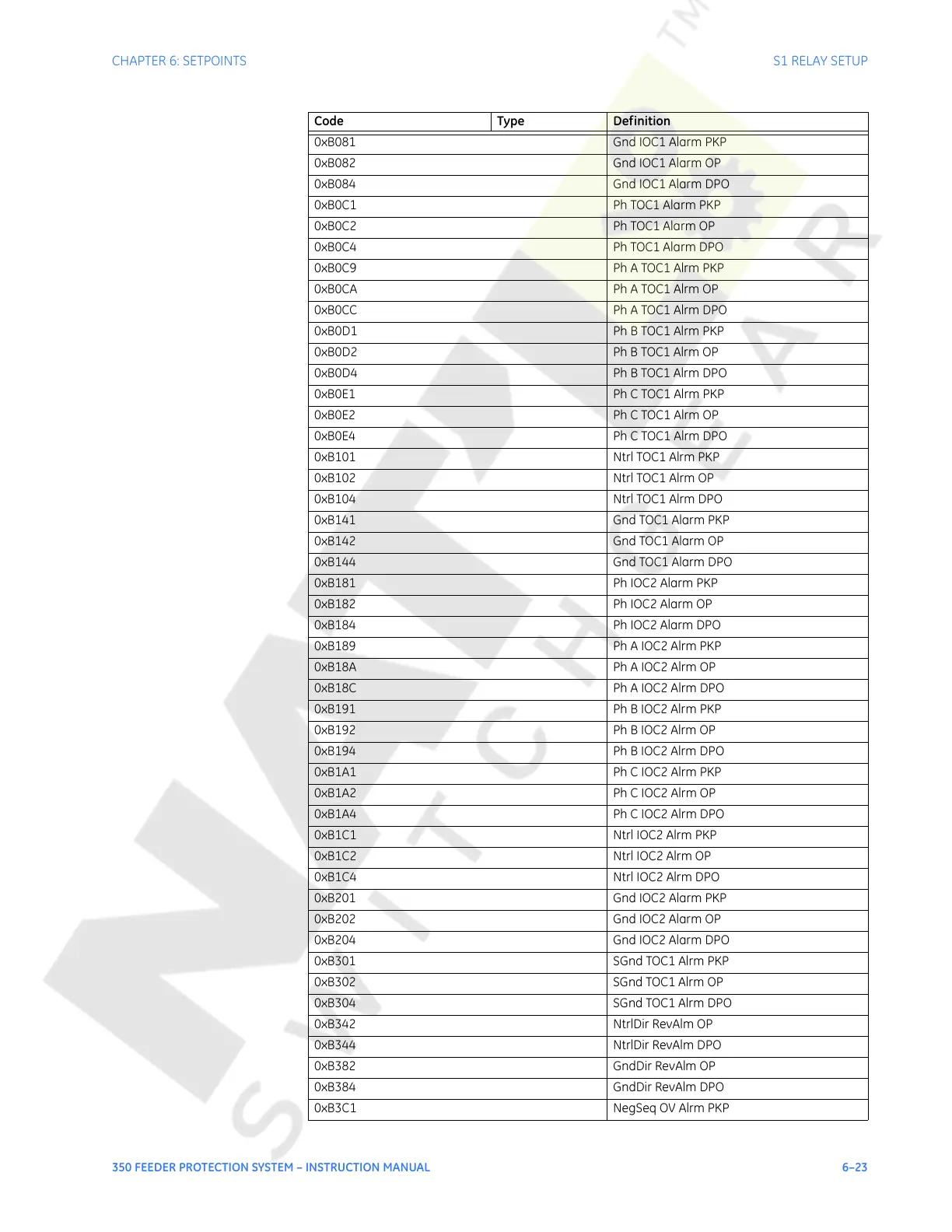 0xB0C1 Ph TOC1 Alarm PKP