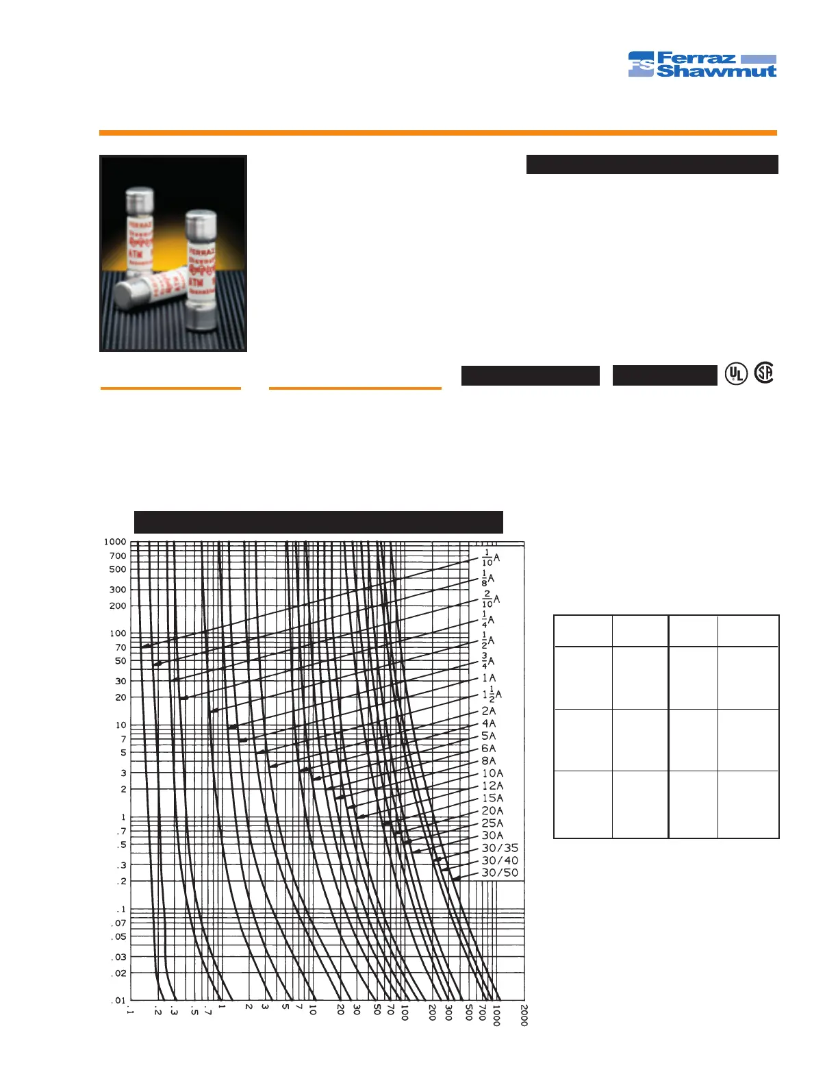 Melting Time – Current Data 1/10 - 30/50 Amperes, 600 Volts AC