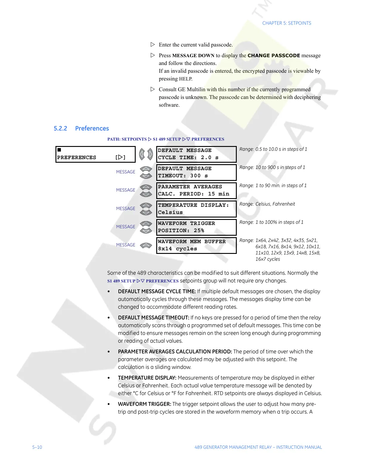 5–10 489 GENERATOR MANAGEMENT RELAY – INSTRUCTION MANUAL