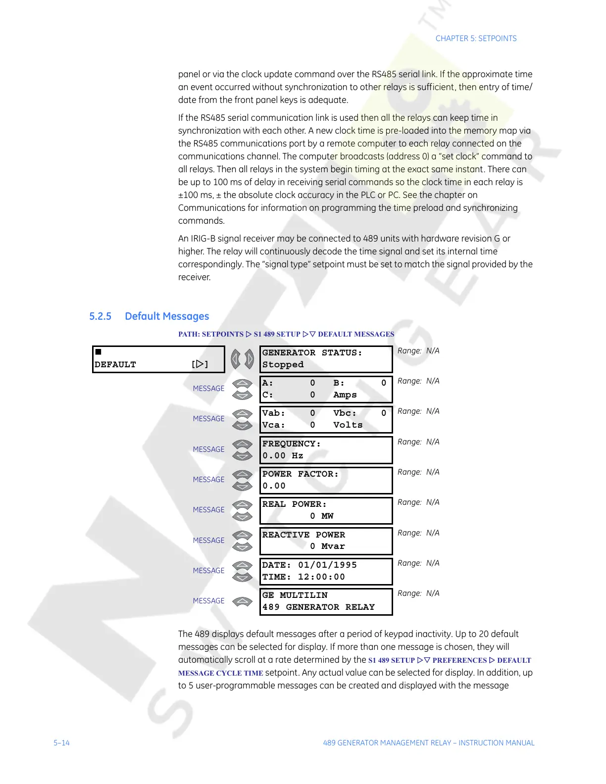 5–14 489 GENERATOR MANAGEMENT RELAY – INSTRUCTION MANUAL