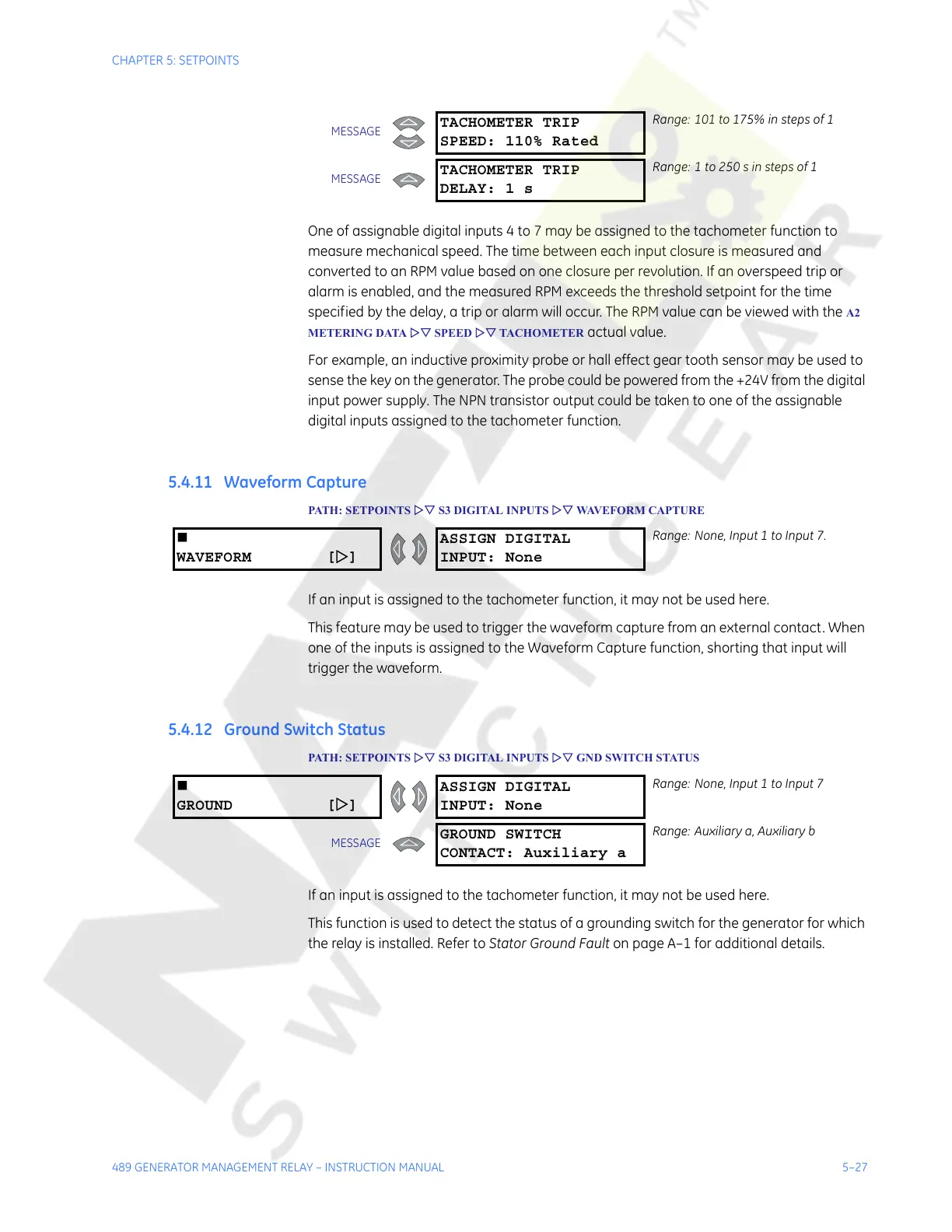 489 GENERATOR MANAGEMENT RELAY – INSTRUCTION MANUAL 5–27