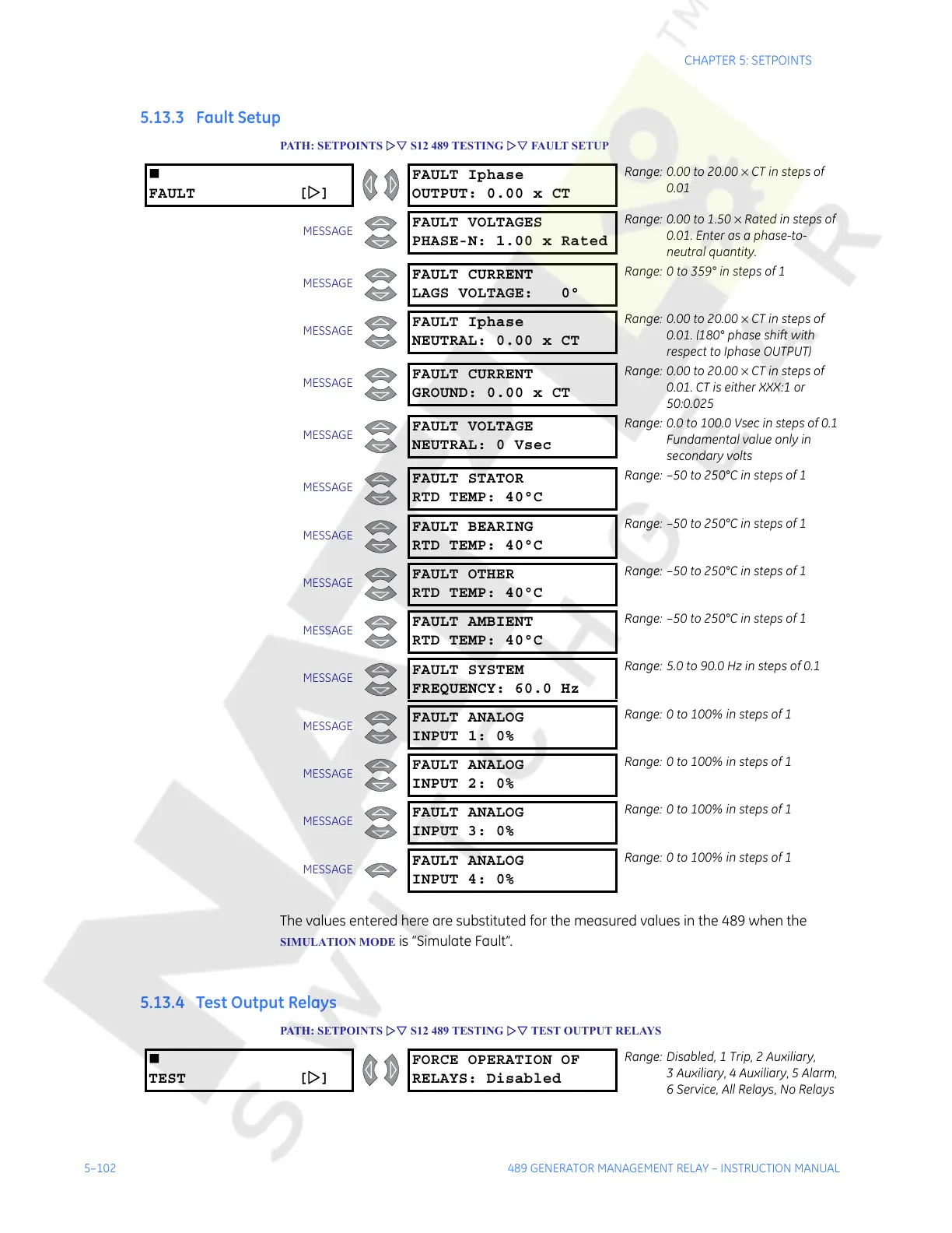 5–102 489 GENERATOR MANAGEMENT RELAY – INSTRUCTION MANUAL