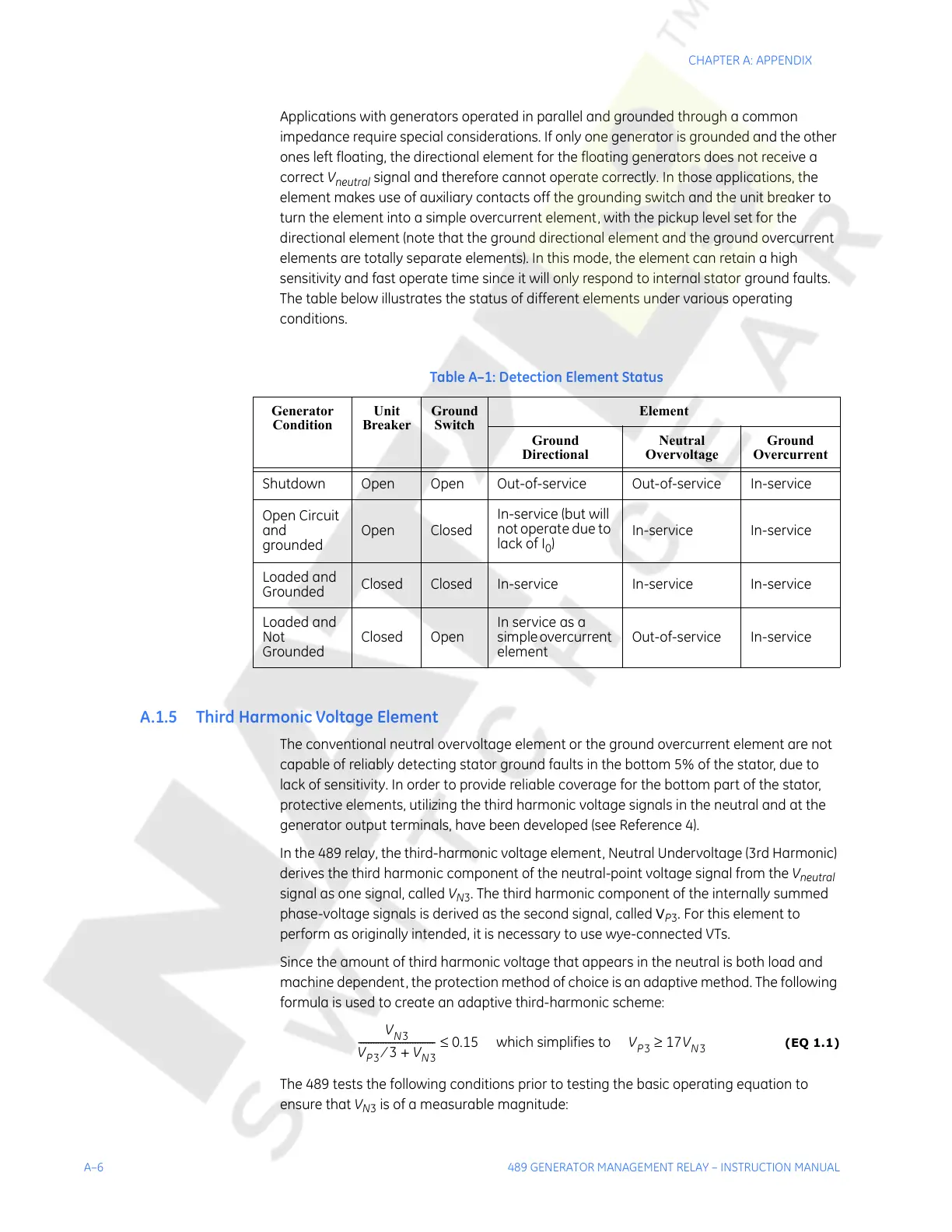 A.1.5 Third Harmonic Voltage Element