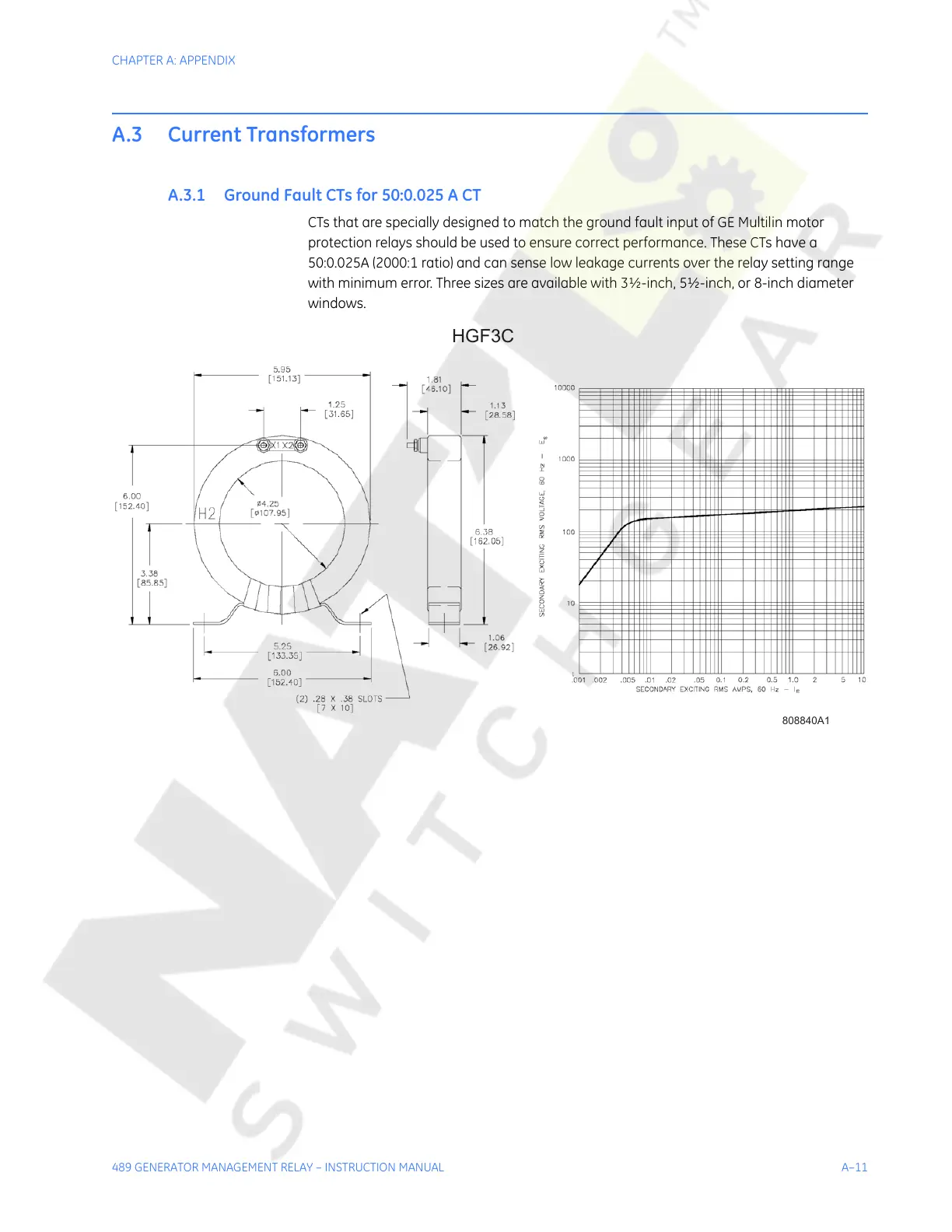 A.3.1 Ground Fault CTs for 50:0.025 A CT