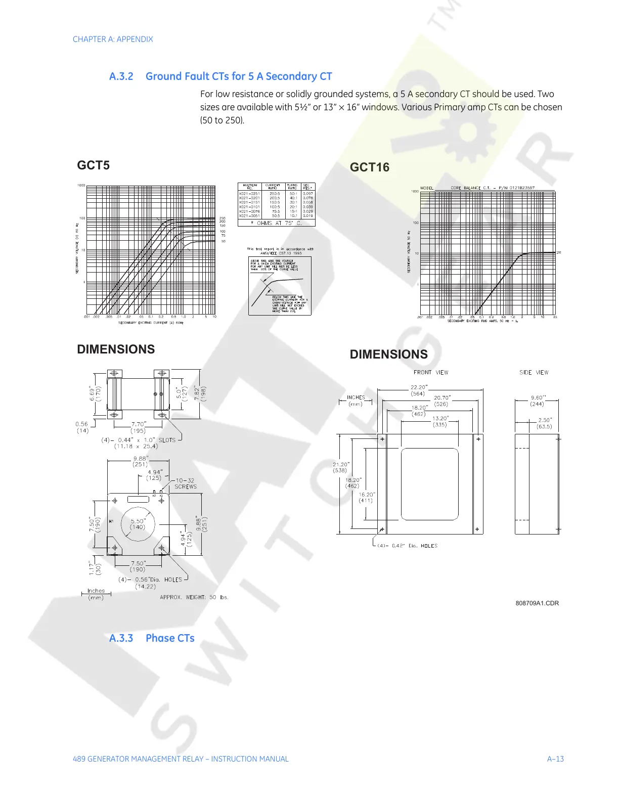A.3.2 Ground Fault CTs for 5 A Secondary CT