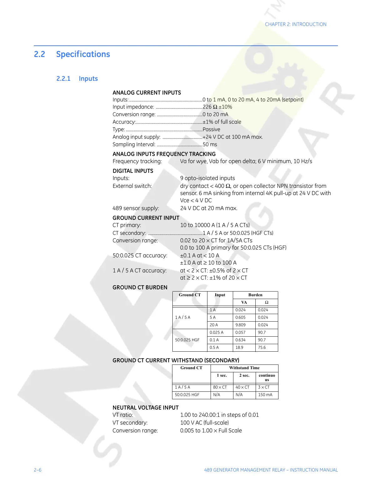 2–6 489 GENERATOR MANAGEMENT RELAY – INSTRUCTION MANUAL