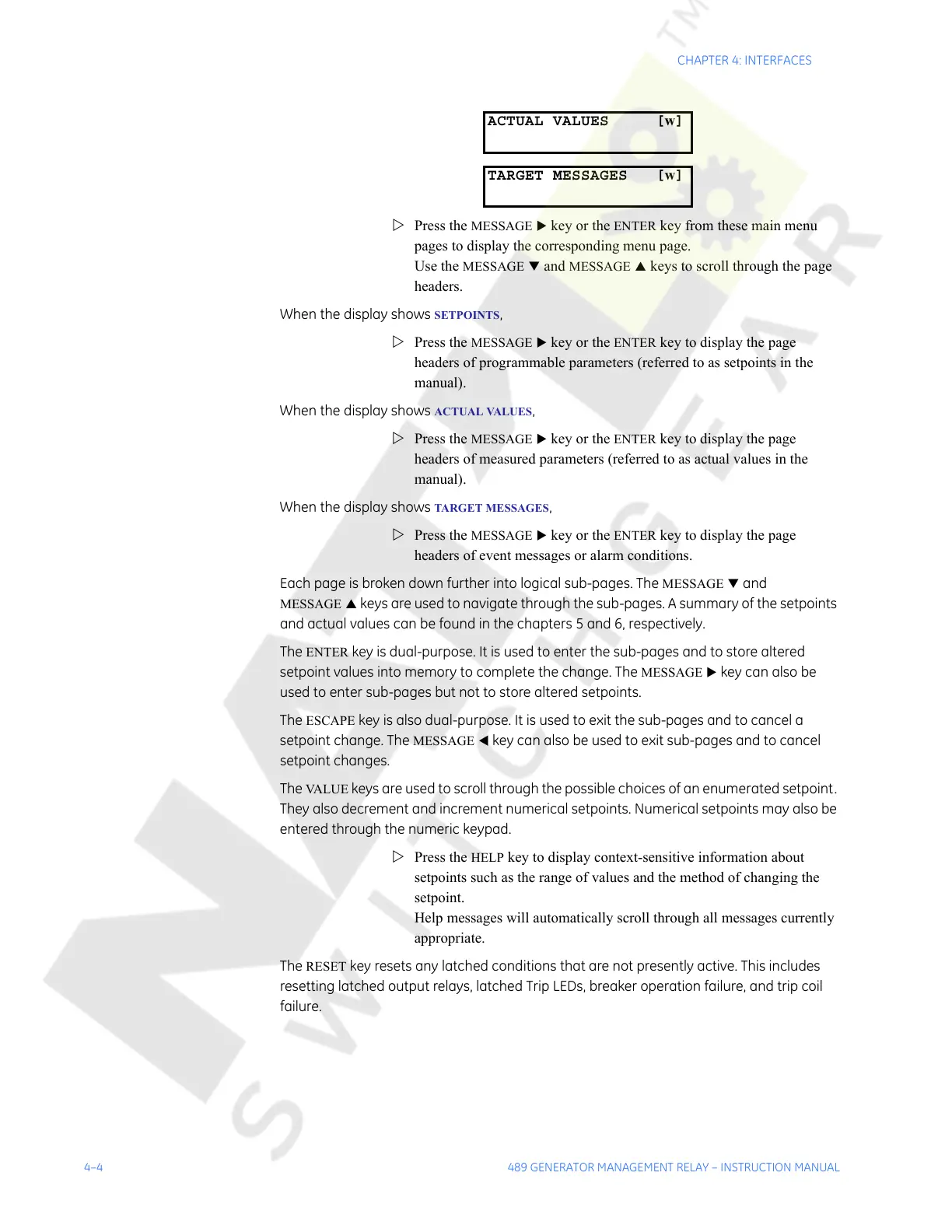 4–4 489 GENERATOR MANAGEMENT RELAY – INSTRUCTION MANUAL