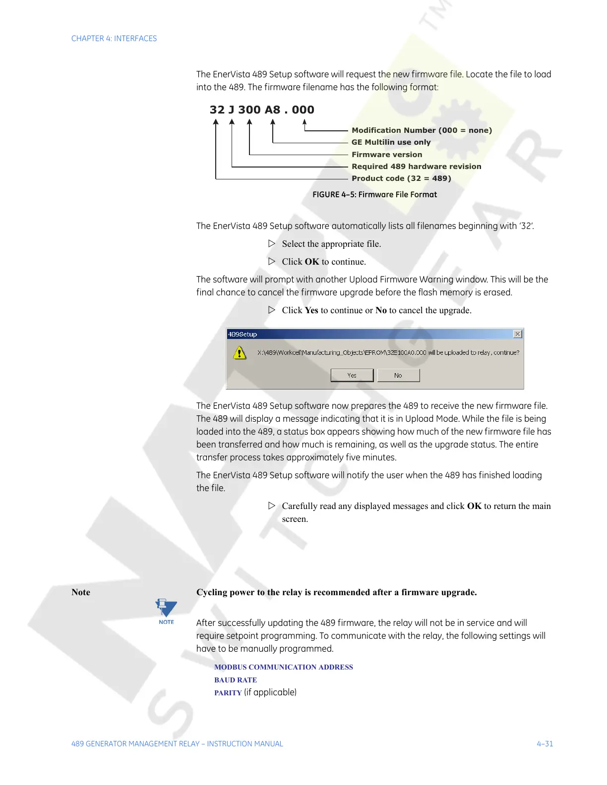 The EnerVista 489 Setup software automatically lists all filenames beginning with ‘32’.