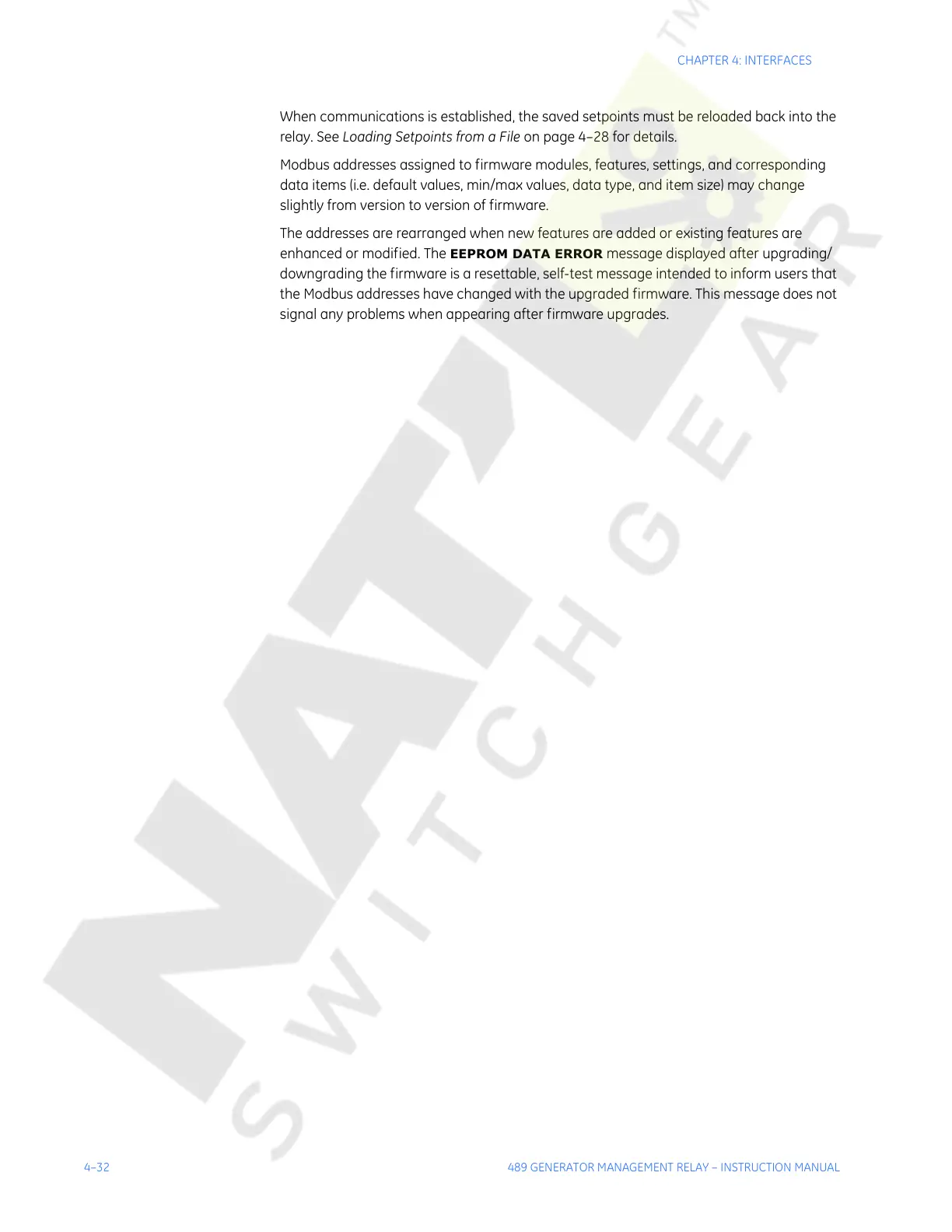 4–32 489 GENERATOR MANAGEMENT RELAY – INSTRUCTION MANUAL