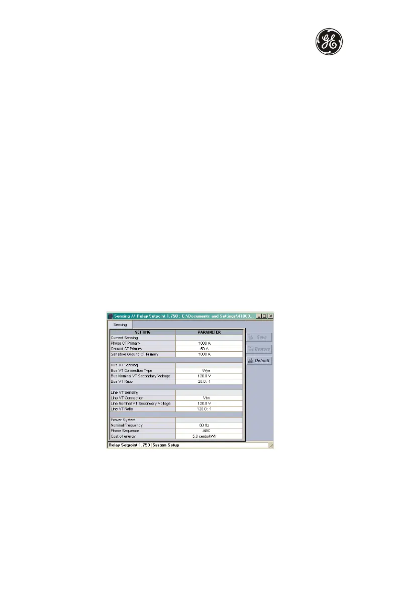 voltage, VT ratio, and system frequency as required, then press the Save button.