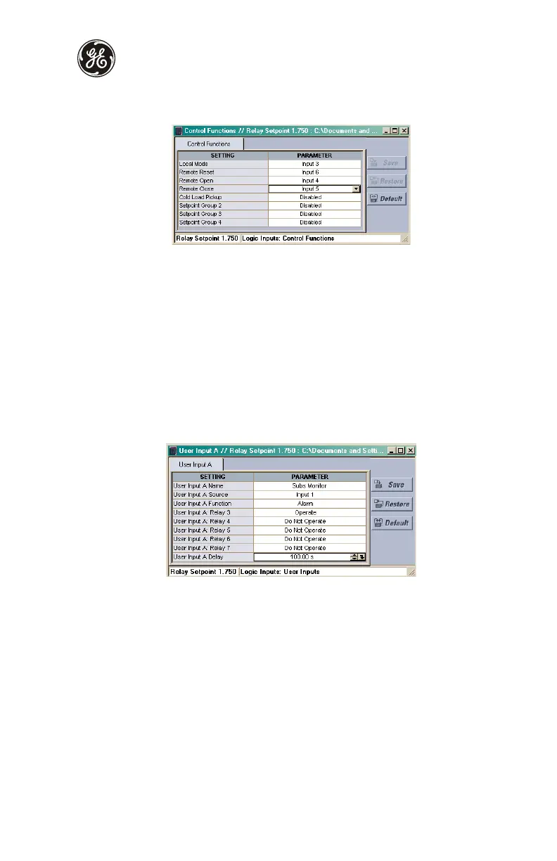 3. Inputs 3, 4, 5, and 6 will perform control functions. Select the Setpoints > S3 Logic