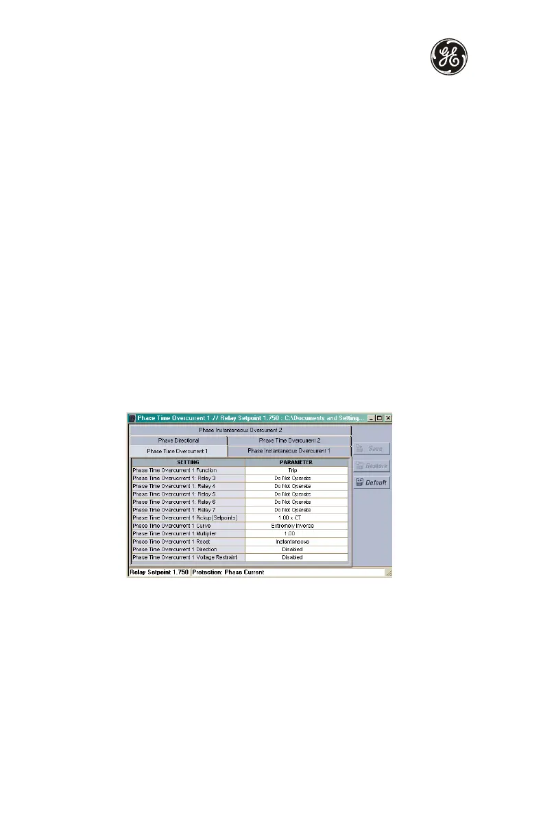 menu item. All setpoints related to phase current will appear grouped in a single page with