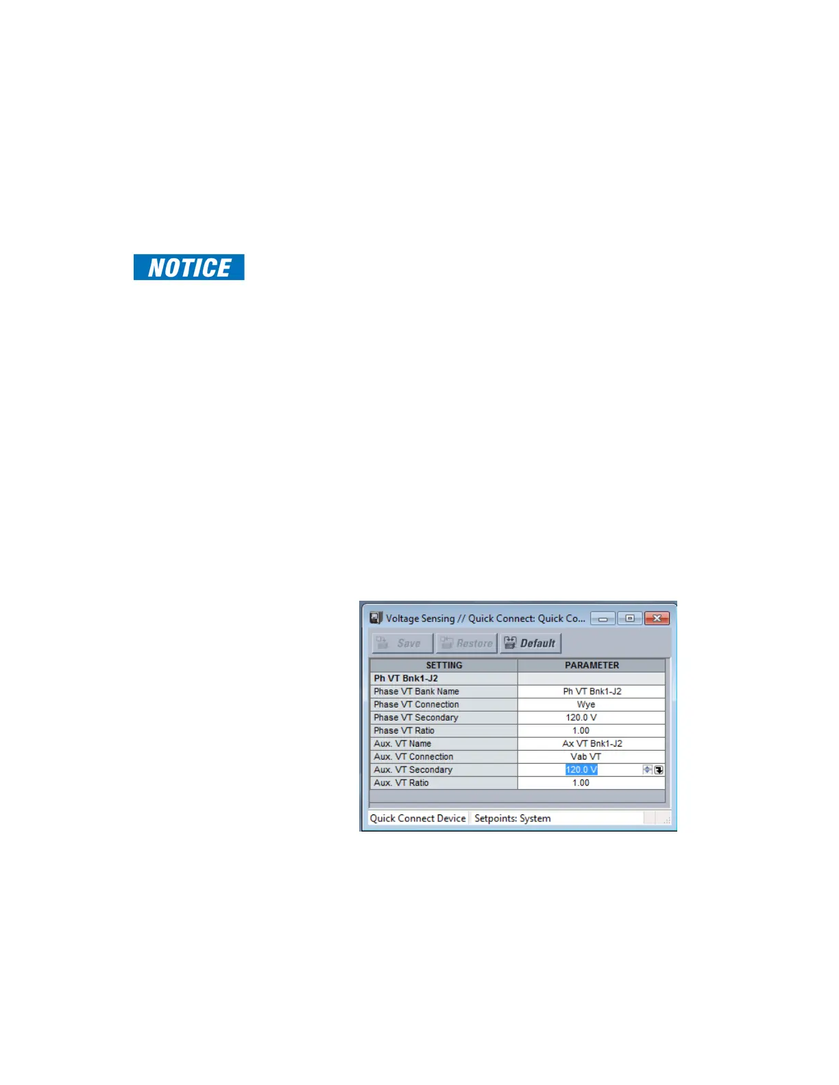 3. Select the Aux. VT Secondary setpoint by clicking anywhere in the parameter box. This
