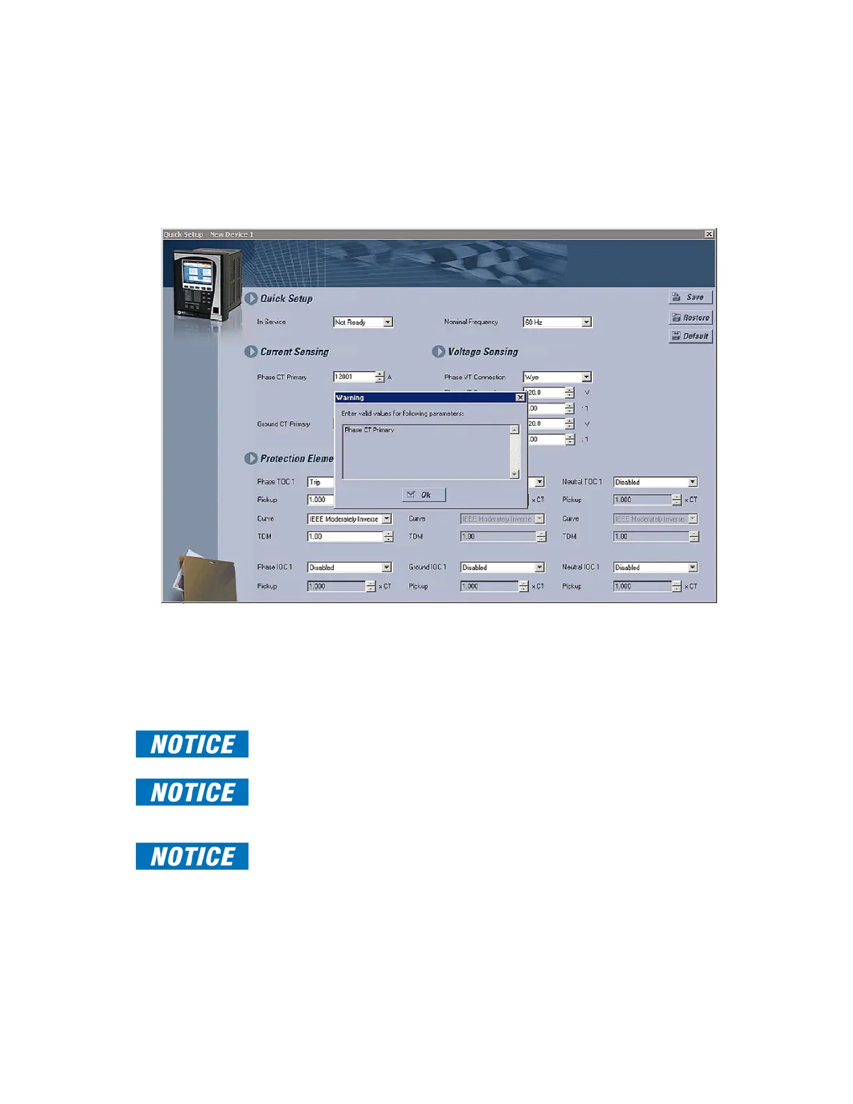 Example:The Phase CT Primary value has a setting range of 1 to 12000, but the user