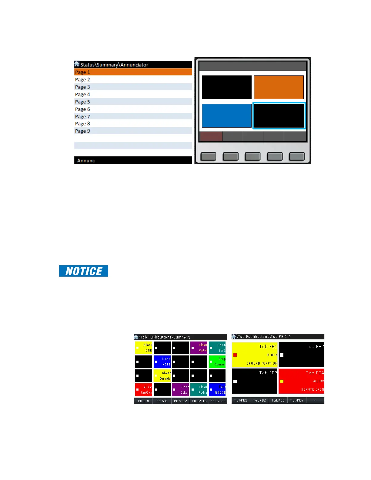 • Path: Status > Summary > Tab Pushbuttons (from relay)