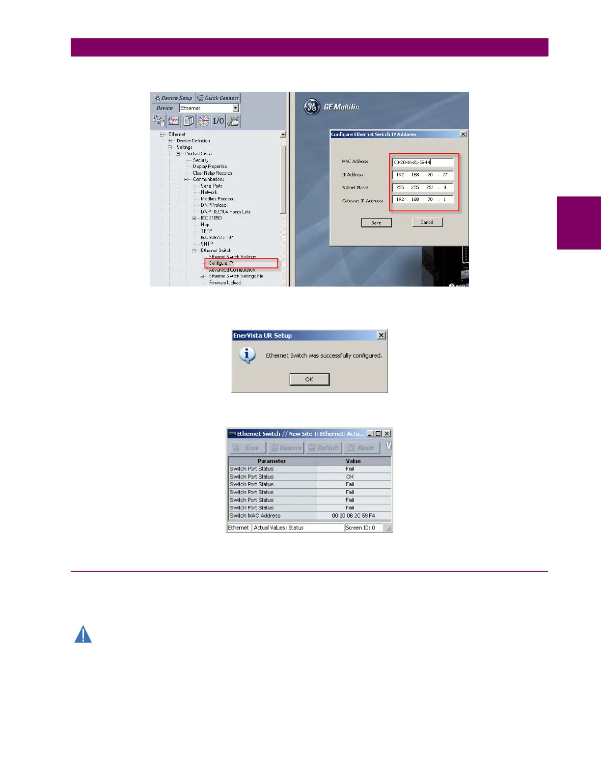 A suitable IP/gateway and subnet mask must be assigned to both the switch and the UR relay for correct operation. The
