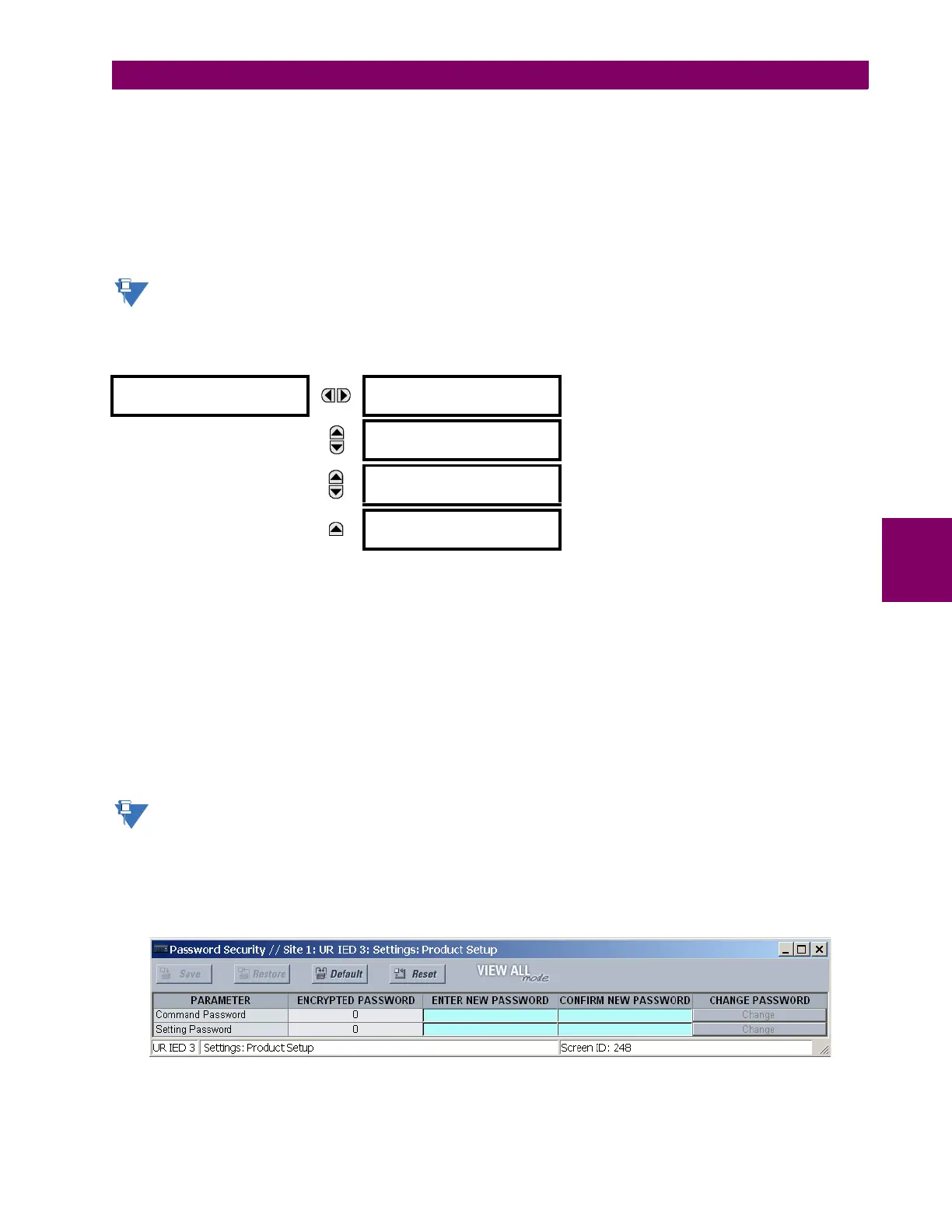 The remote password settings are only visible from a remote connection via the EnerVista UR Setup software. Select the