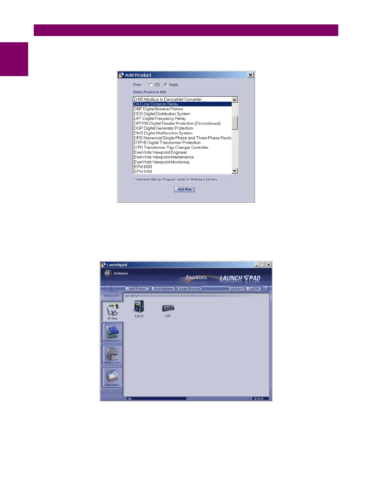 5. In the EnerVista Launch Pad window, click the Add Product button and select the “G60 Generator Protection System”