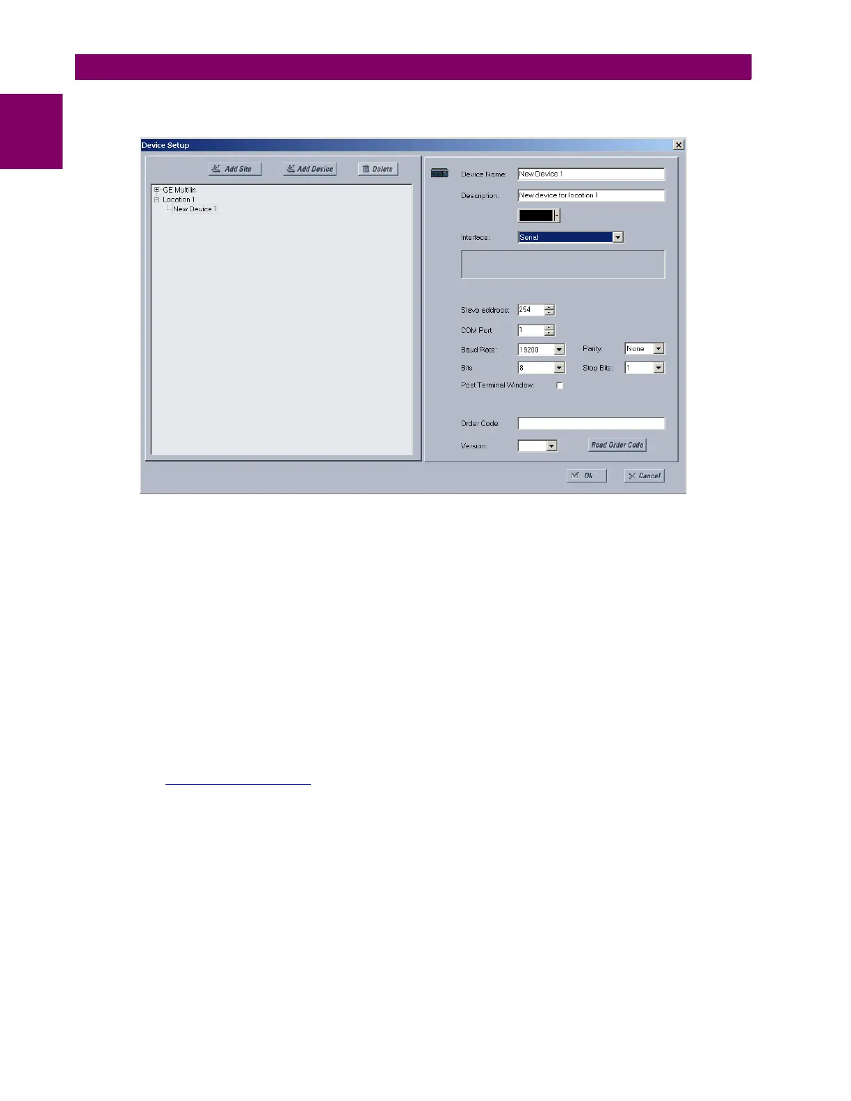 5. The new site will appear in the upper-left list in the EnerVista UR Setup window. Click the Device Setup button then