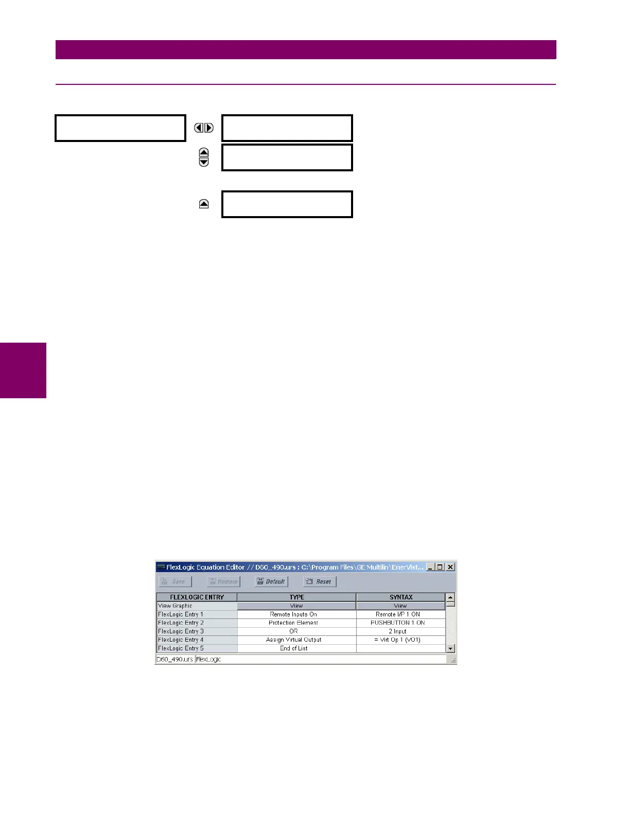 Both the pushbutton and the remote input will be programmed as “Latched”. Write the following FlexLogic™ equation: