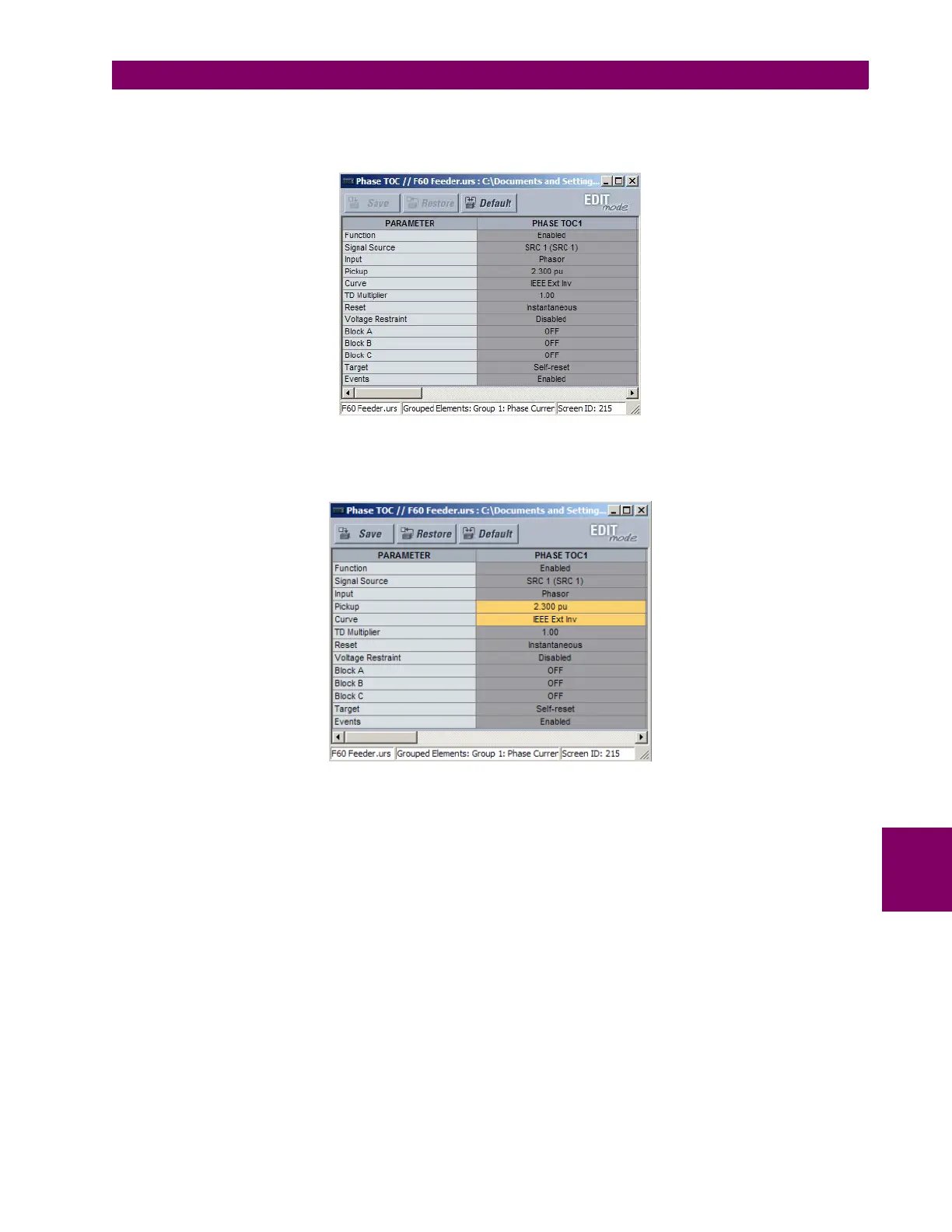 the settings window will also indicate that EnerVista UR Setup is in EDIT mode. The following example shows the