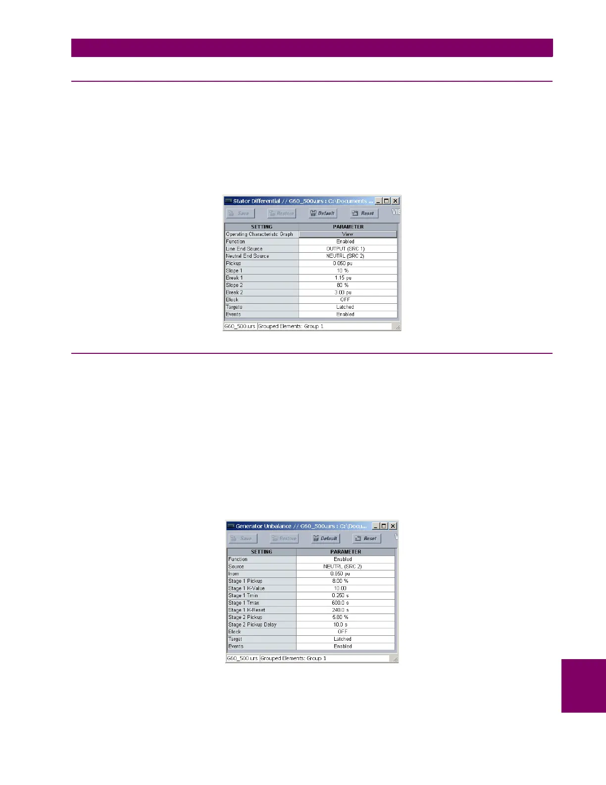 Stage 1 of the generator unbalance element is typically used to trip the generator. In this example, the I